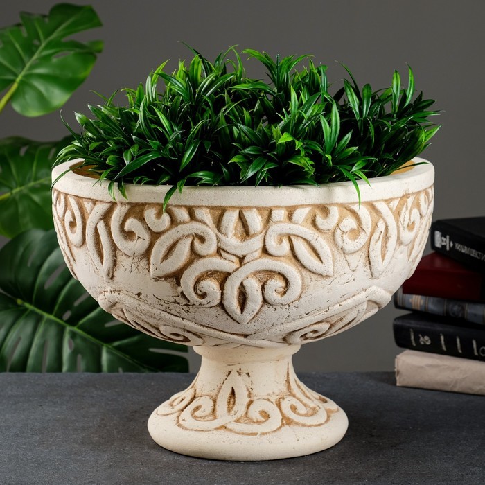 Вазон для цветов «Арабское», 1.3 л, 31?20?25 см, гипс, бежевый Вопросы по товару