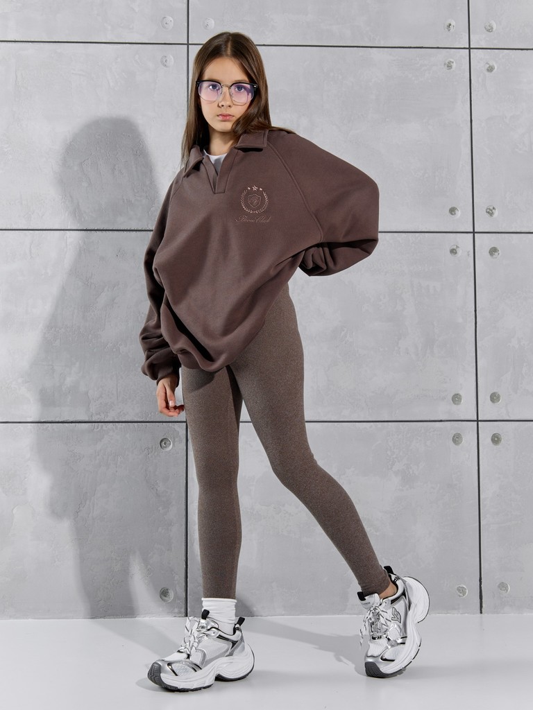 Брюки-леггинсы для девочки из трикотажного полотна "Селаник" с лайкрой, длинные, классического покроя, высокой степени прилегания к поверхности тела, с эластичной тесьмой по талии.