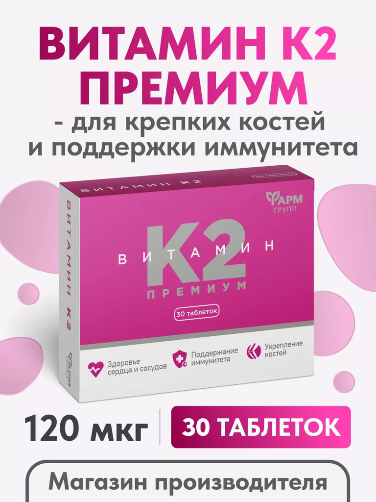 ФАРМ ГРУПП Таблетки Витамин К2 Премиум №30, 30 таблеток по 200мгВопросы по товару