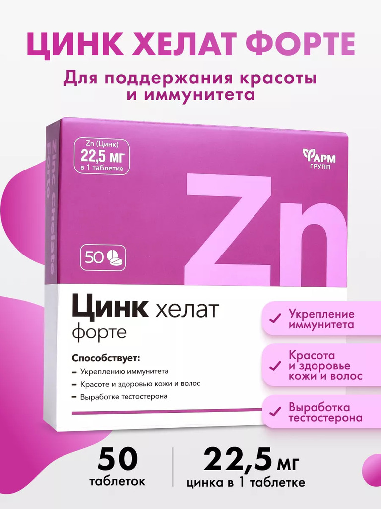 ФАРМ ГРУПП Таблетки Цинк Хелат Форте, 50 таблеток по 500мгВопросы по товару
