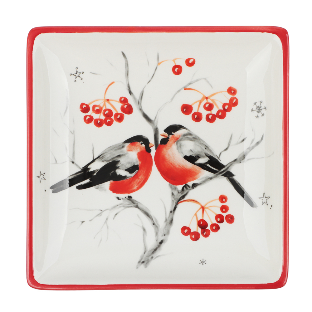 MILLIMI Снегири Блюдо квадратное 15х15х2,9см, керамикаВопросы по товару