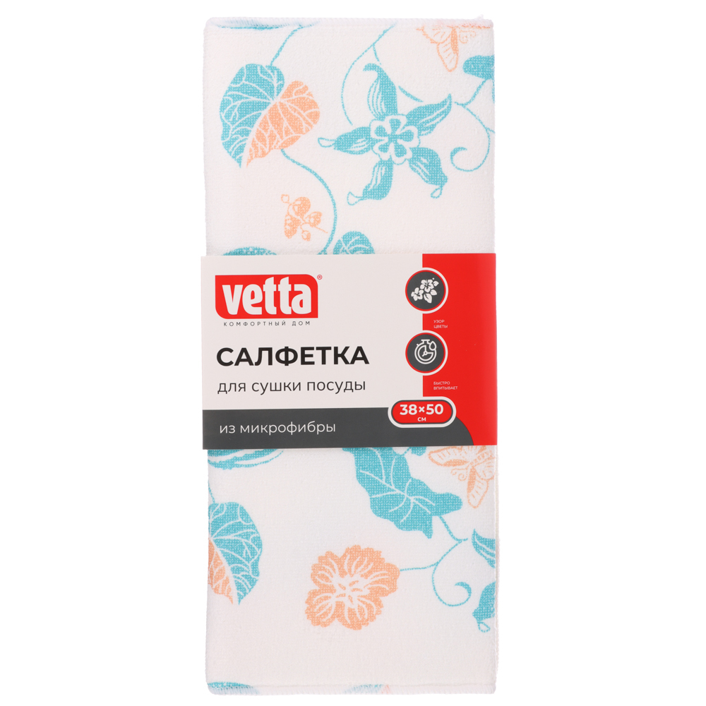 VETTA Салфетка для сушки посуды из микрофибры, "Цветы", 38x50см, 300г/кв.м, 1 дизайнВопросы по товару