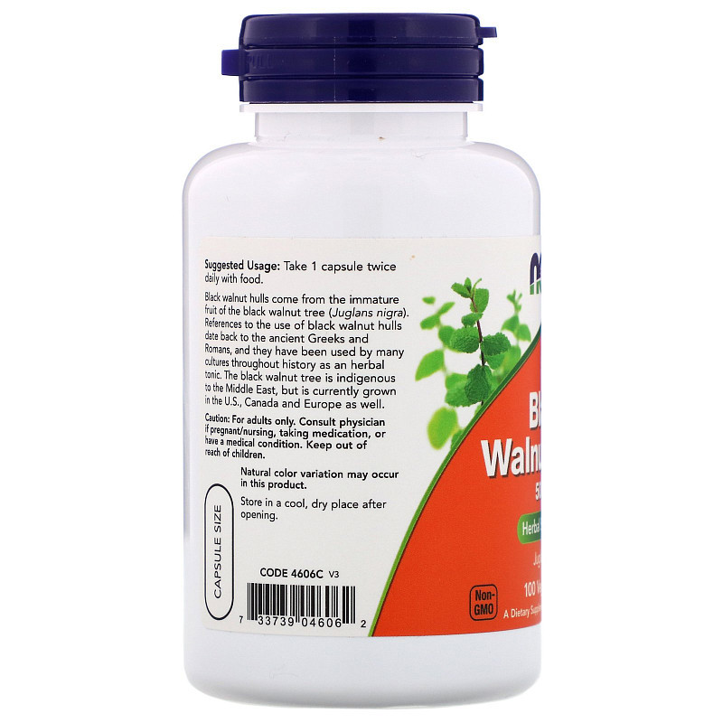 NOW Черный орех 605мг 100капс (BLACK WALNUT HULLS 500MG 100 VCAPS)Вопросы по товару