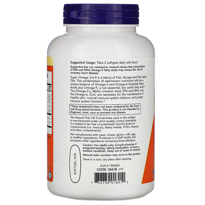 NOW "Супер Омега-3-6-9 1200 мг" 90 капс 1700мг (SUPER OMEGA 3-6-9 1200mg)Вопросы по товару