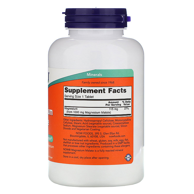 NOW Магний 1700мг 180таб (MAGNESIUM MALATE 1000mg 180 TABS)Вопросы по товару