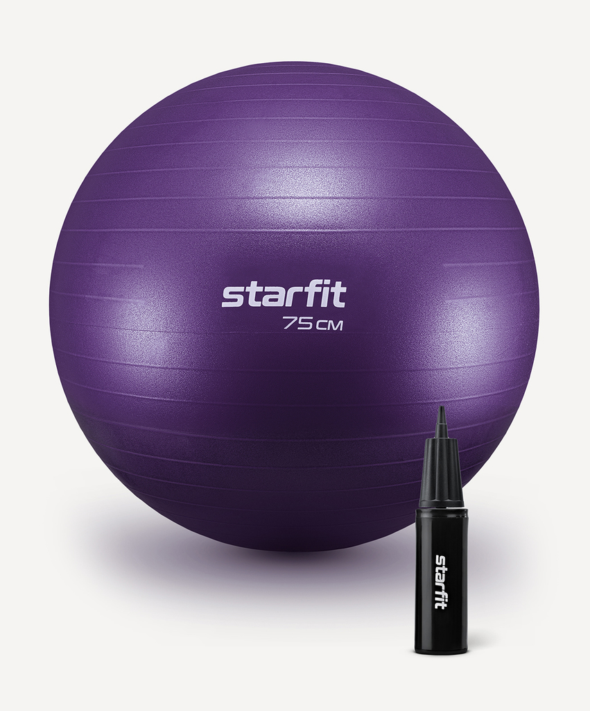 БЕЗ УПАКОВКИ Фитбол STARFIT GB-109 антивзрыв, 1200 гр, с ручным насосом, фиолетовый, 75 смВопросы по товару