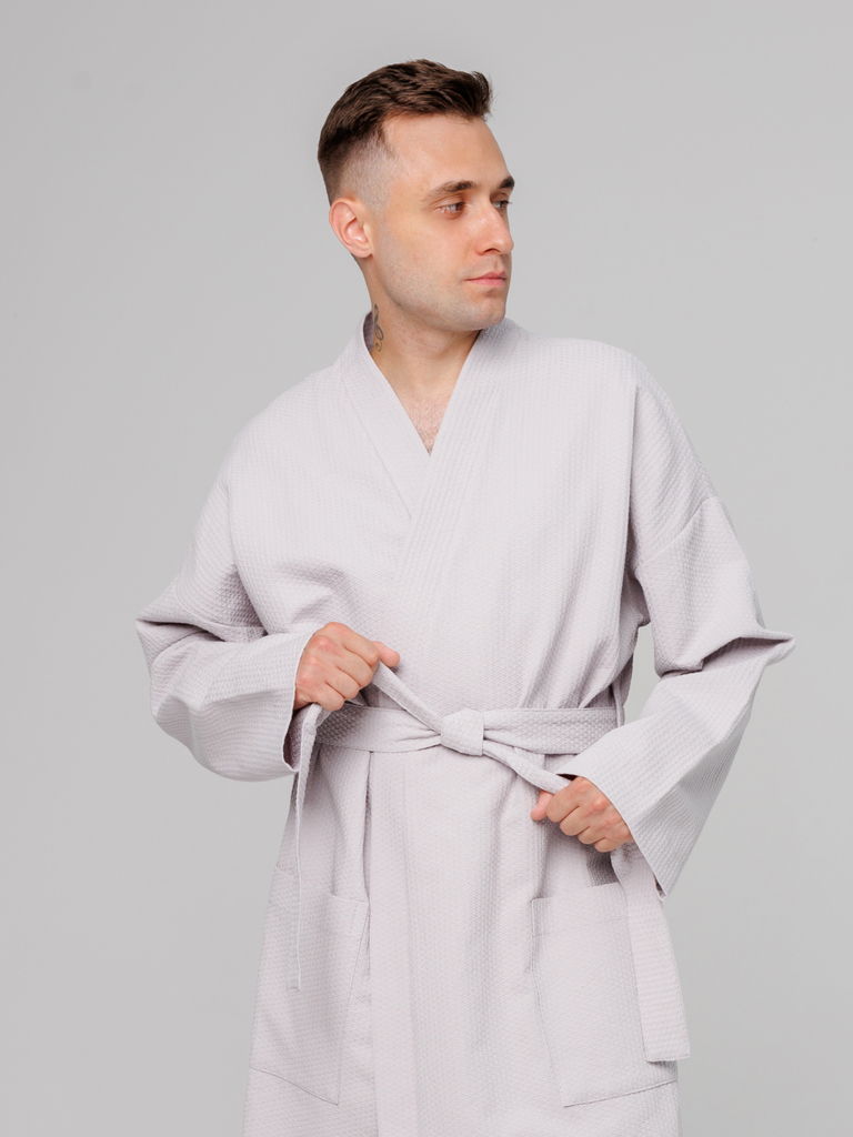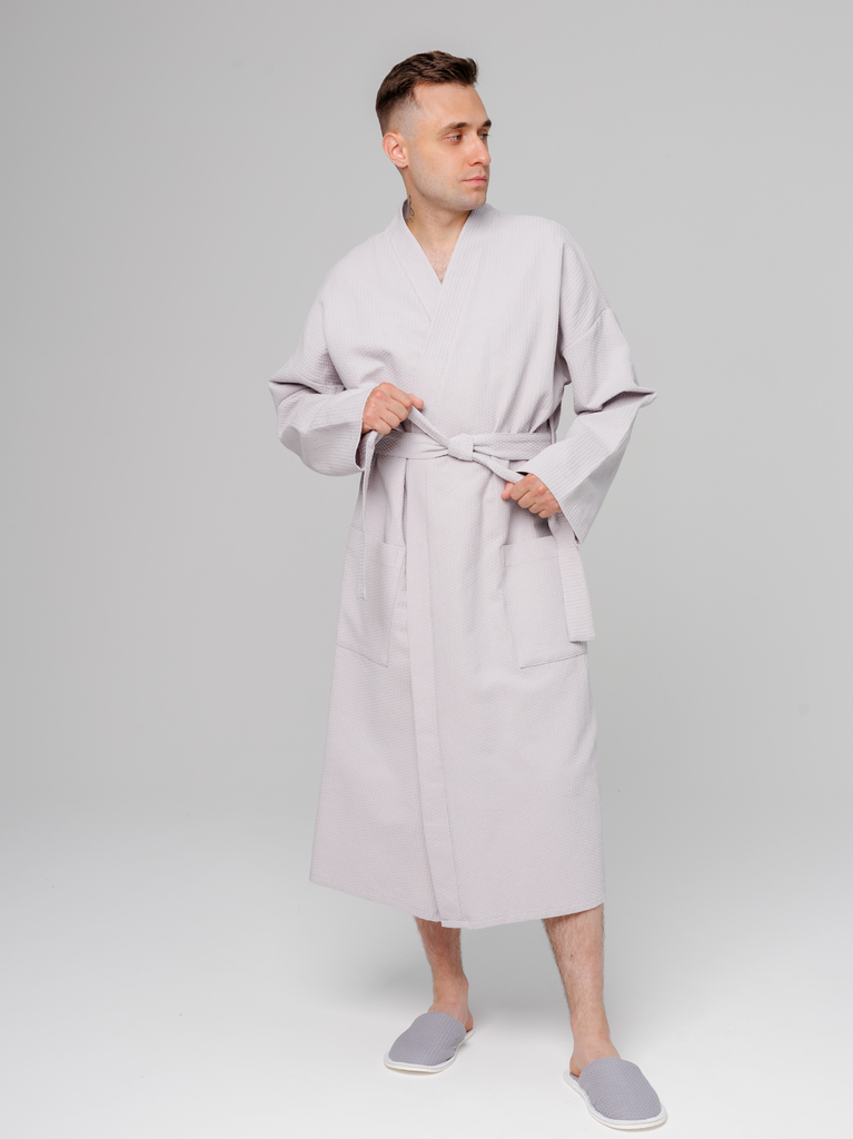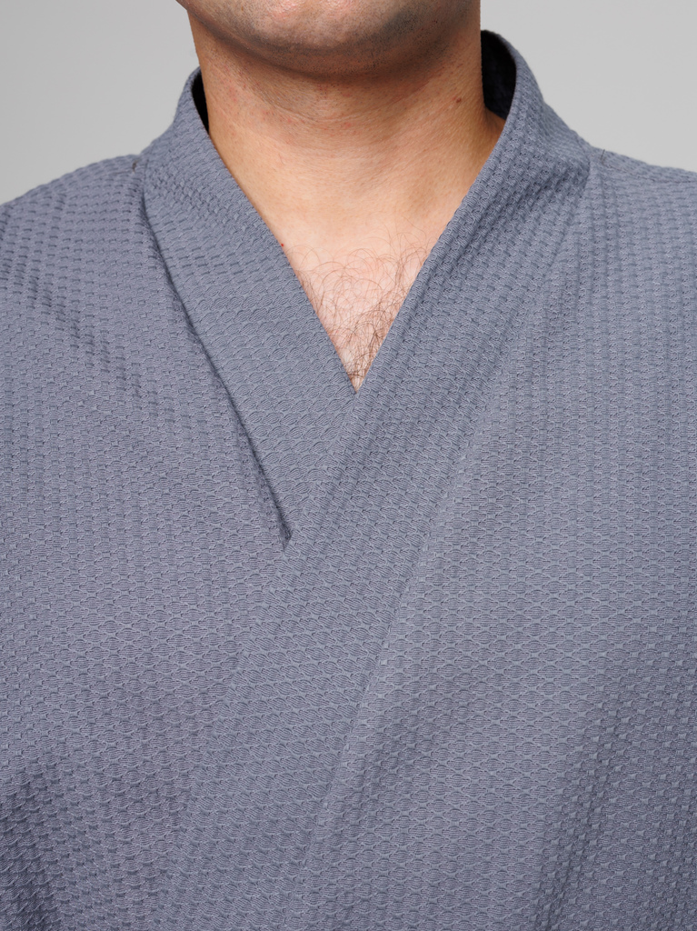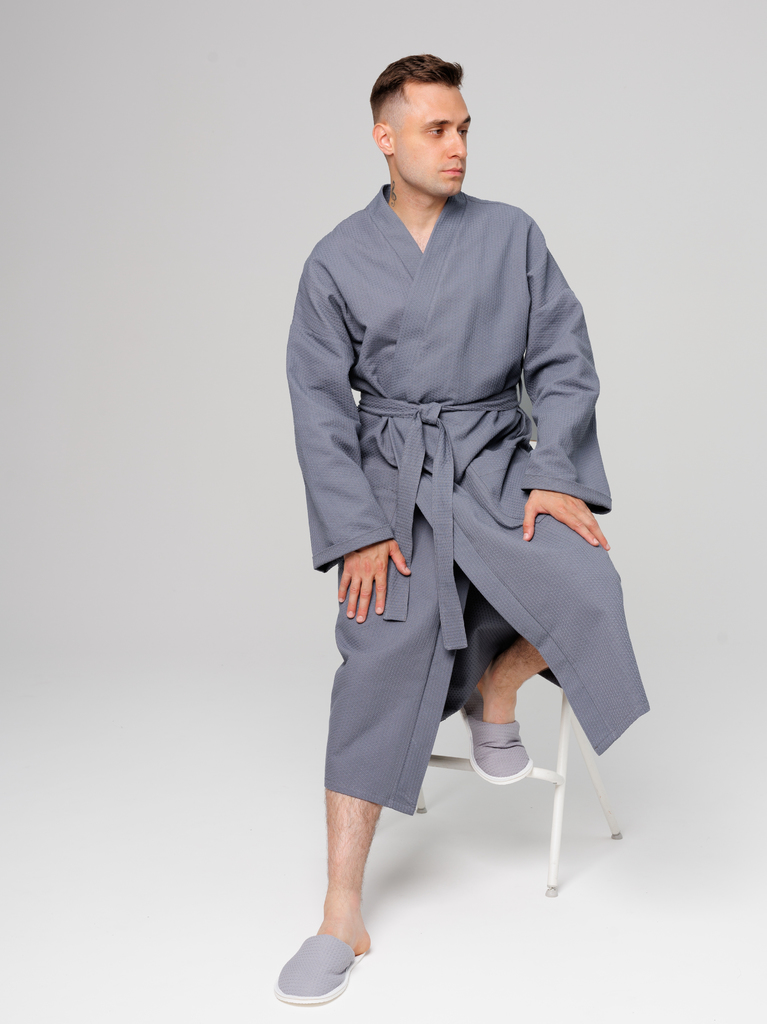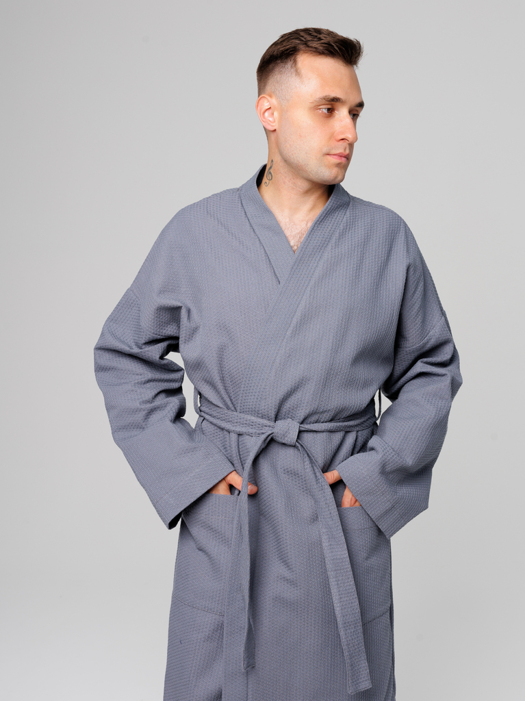 Вафельный удлиненный халат Кимоно унисекс "Ромбы" темно-серый В-14 (32)