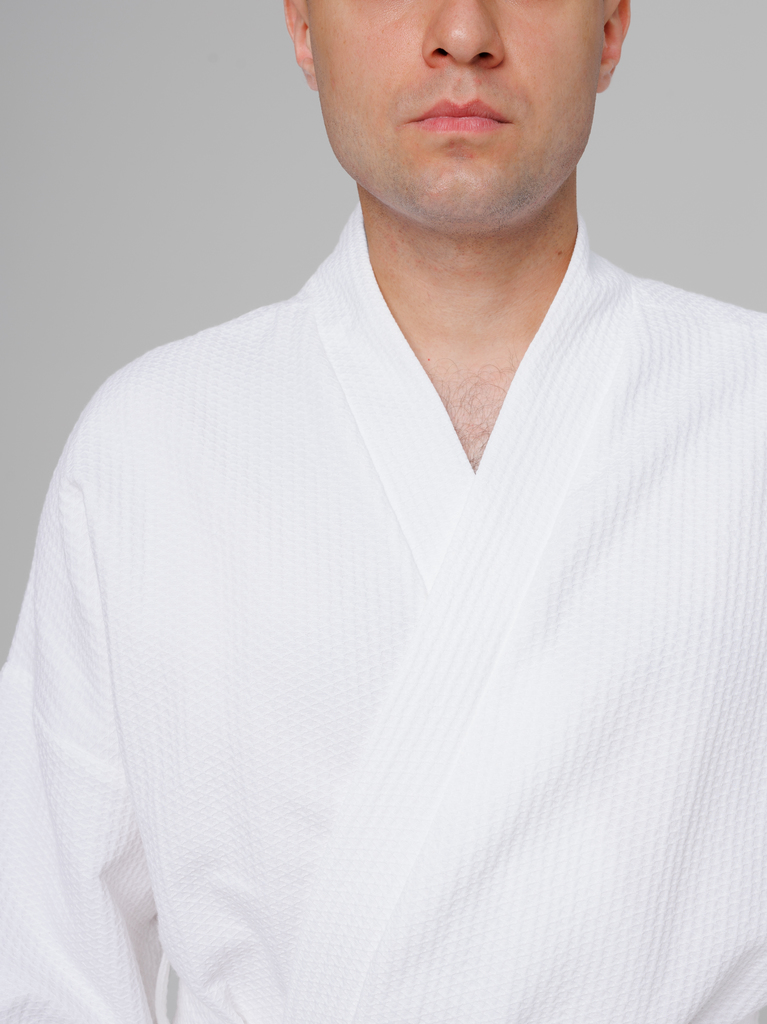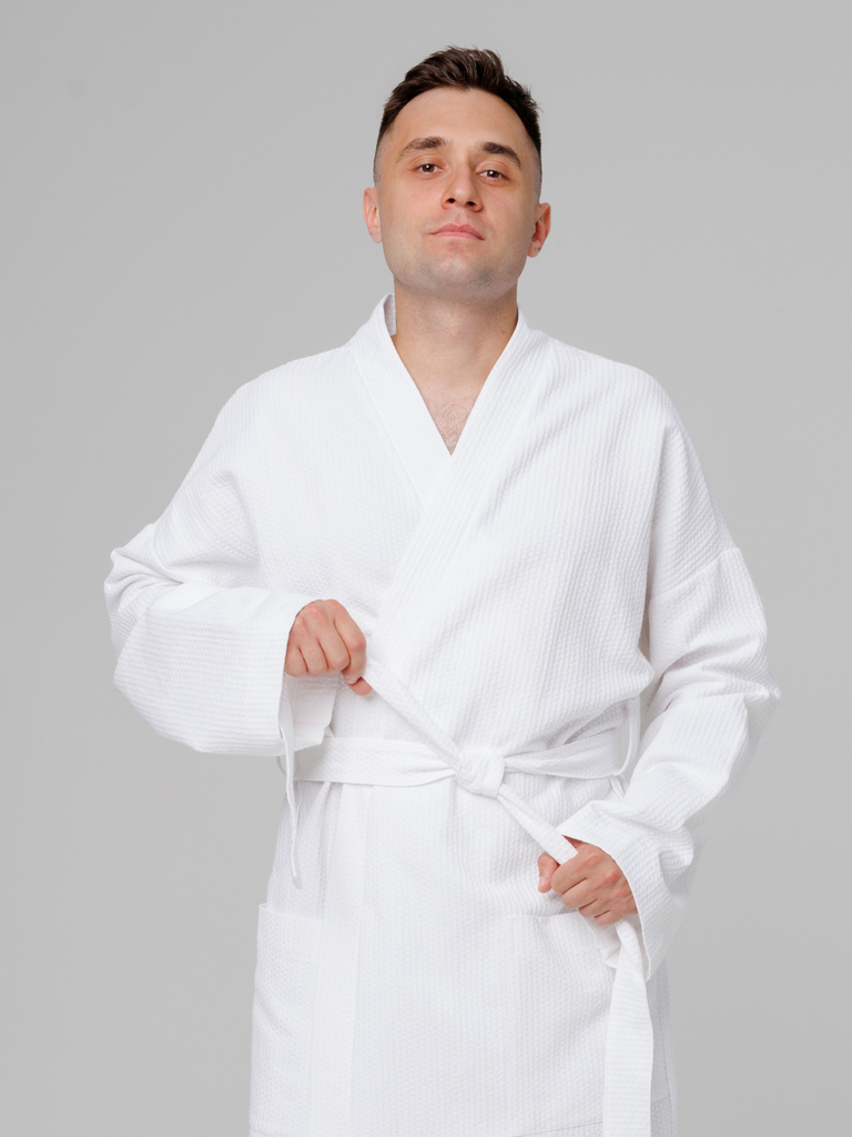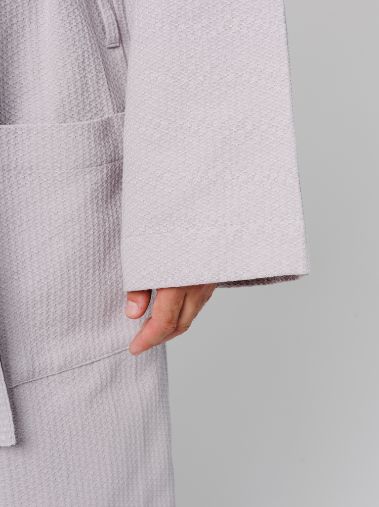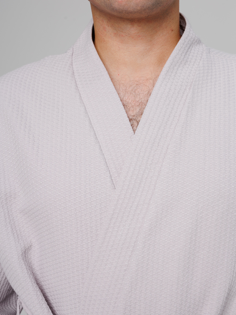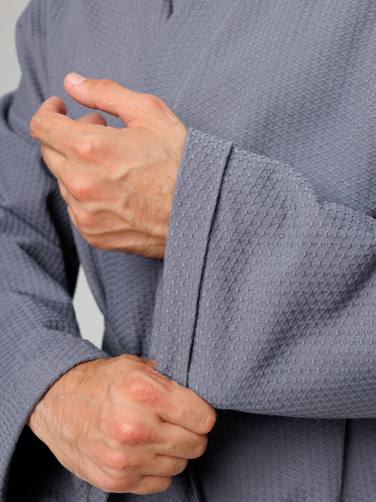 Вафельный удлиненный халат Кимоно унисекс "Ромбы" темно-серый В-14 (32)