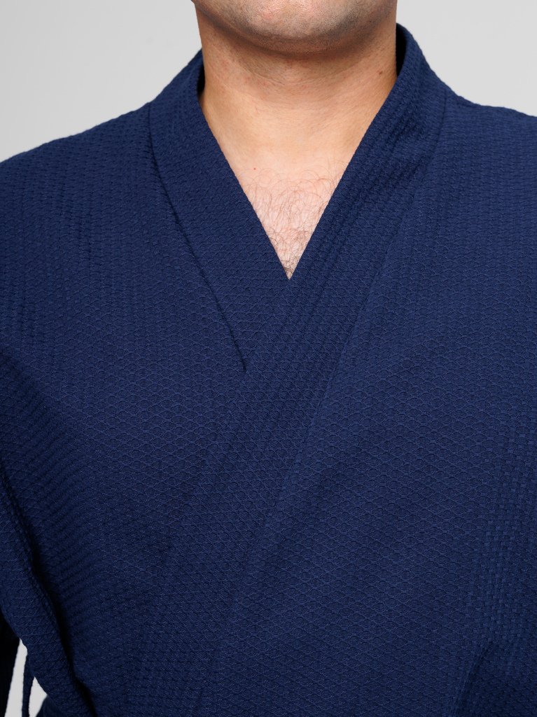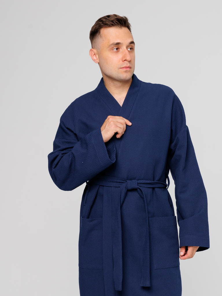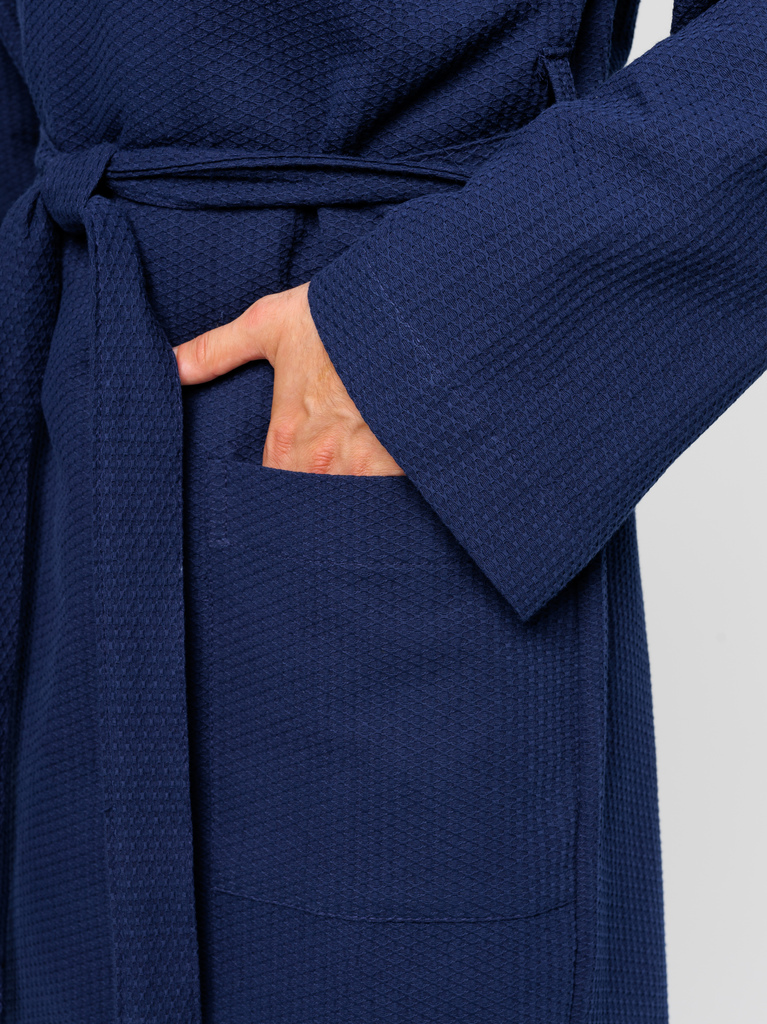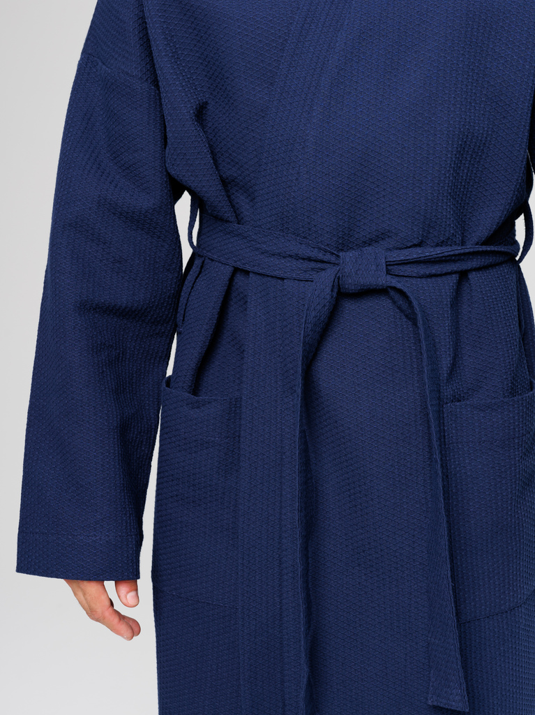 Вафельный удлиненный халат Кимоно унисекс "Ромбы" темно-синий В-14 (28)