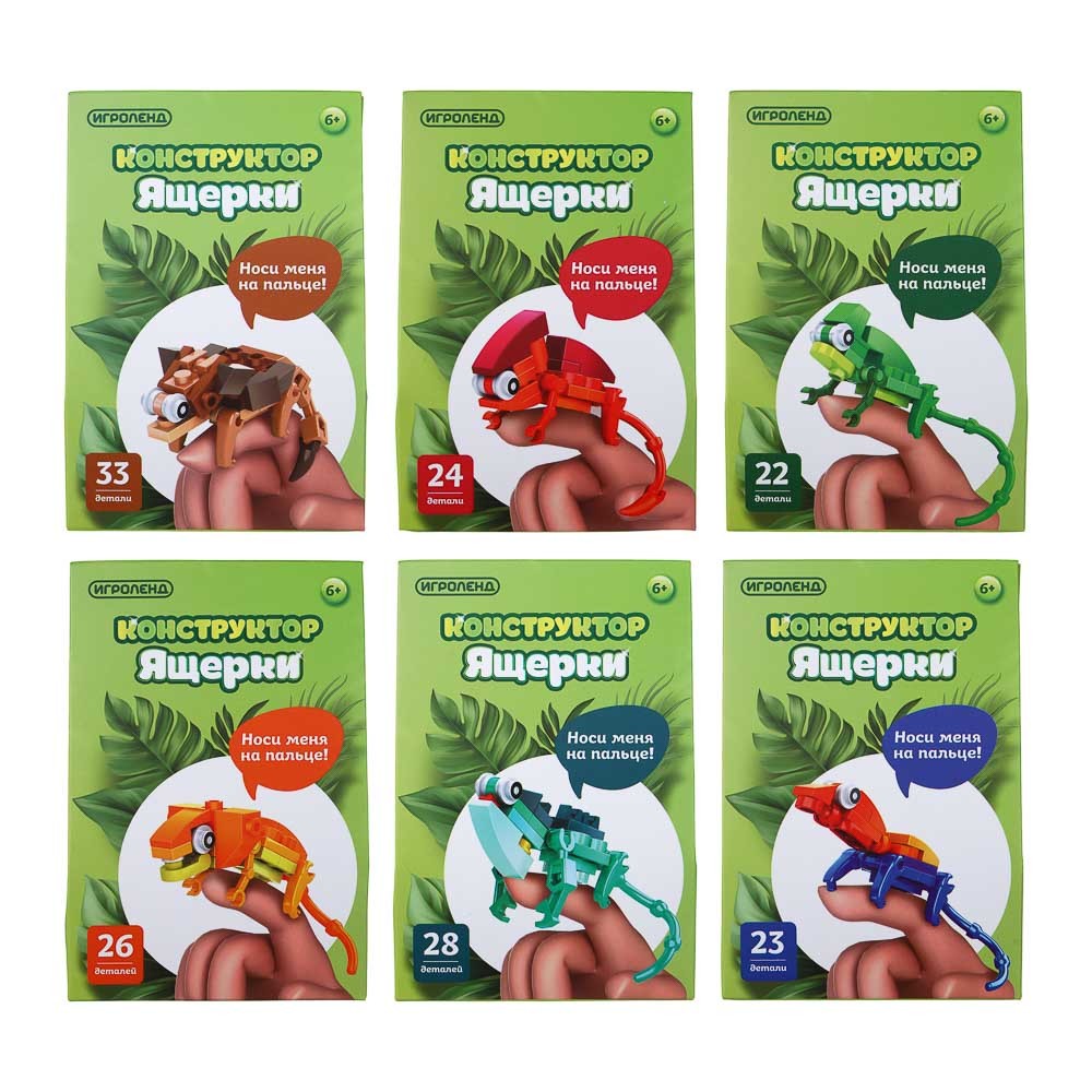 ИГРОЛЕНД Конструктор "Ящерки", от 22 до 33 деталей, РР, 11,8x16x6 см., 6 дизайновВопросы по товару
