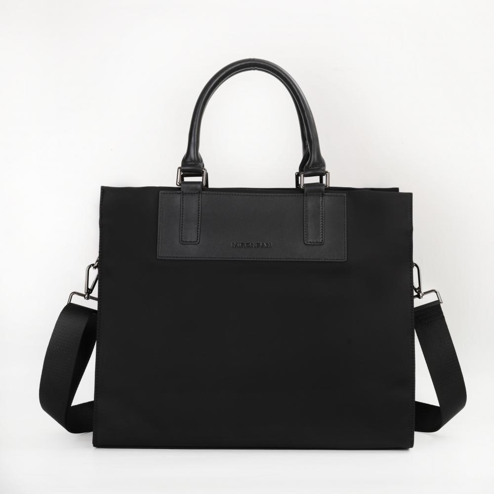 Текстильная сумка MIRONPAN выполнена из высокотехнологичного полиэстера, устойчивого к воздействию влаги и перепаду температур . Он долговечен, практичен и прост в уходе. Основное отделение закр... Показать описаниеывается на молнию. Внутри 4 кармана для мелочей: 3 открытых и на молнии. Детали отделки – из кожи. На тыльной стороне предусмотрен карман быстрого доступа на молнии. Две ручки позволяют комфортно носить аксессуар в руке. Съемный плечевой ремень регулируется по длине, ширина - 3,5 см. Вмещает формат А4 Цвет фурнитуры - темное серебро. Вес - 940 Размер 38 х 30 х 12 (длина х высота х ширина)