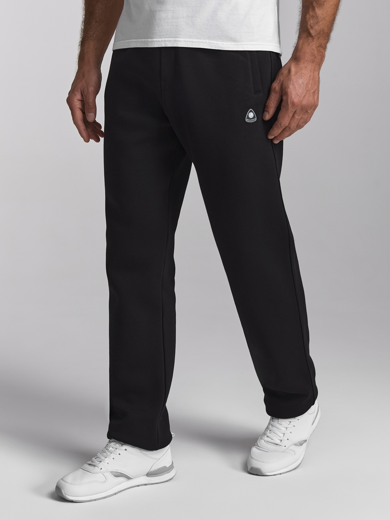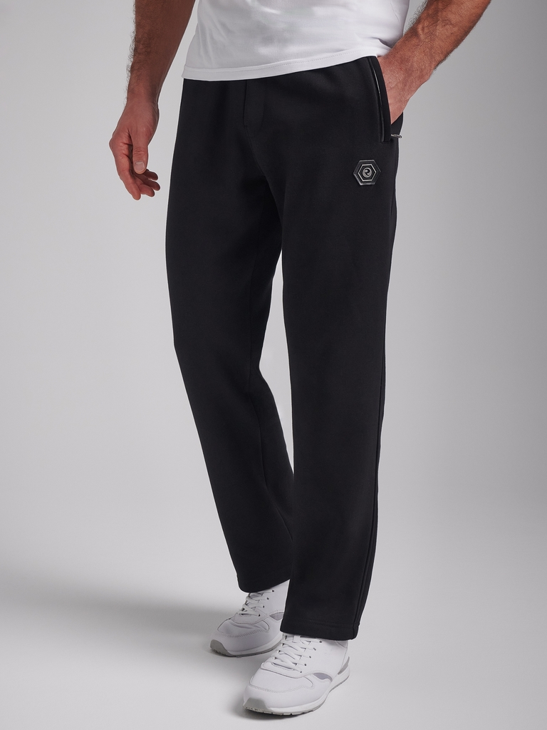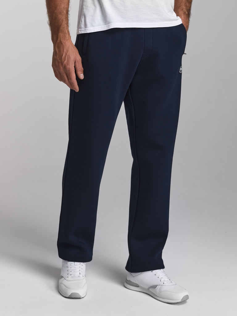 Брюки мужские прямого силуэта из плотного и мягкого хлопкового трикотажного полотна с изнаночным начесом. Карманы с планками, застегиваются на молнии. Под левым карманом настрочен шеврон с фирменным л... Показать описаниеоготипом. Читать далее Пояс с широкой резинкой, по талии дополнительно регулируется шнурком.