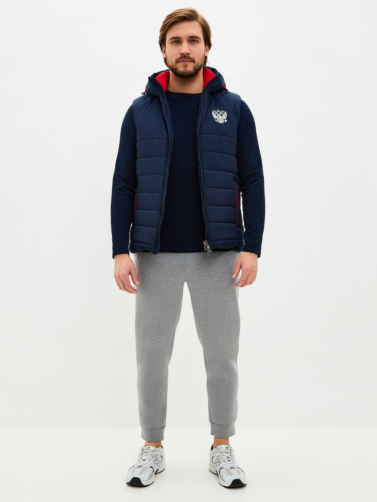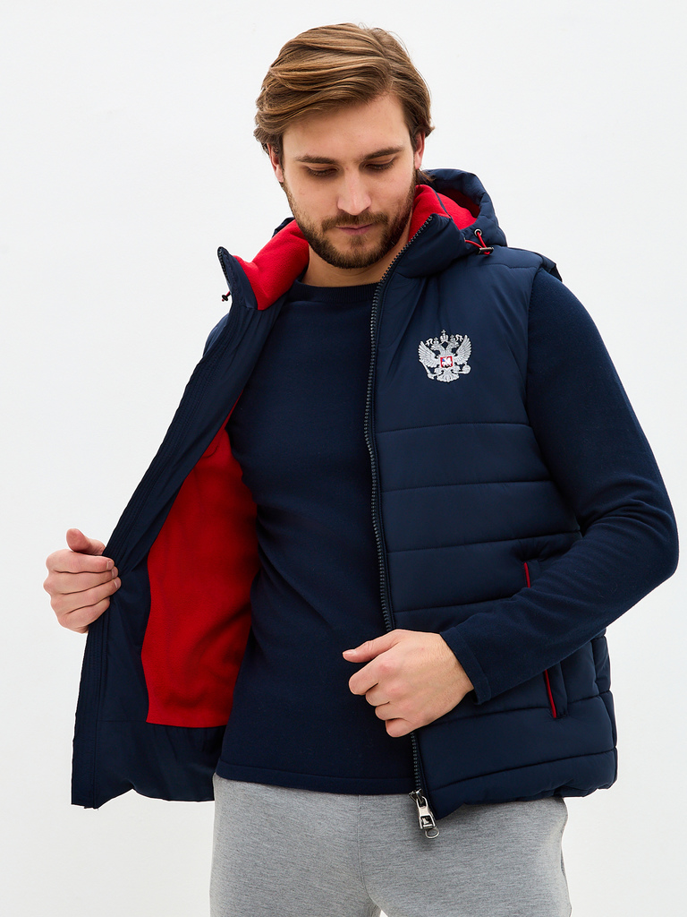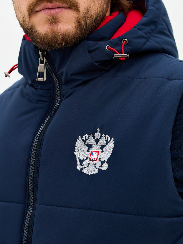 Утепленный жилет, артикул 98M-RT-1778/1 темно-синего цвета изготовлен из водоотталкивающей плащевой ткани с мембранным пленочным покрытием. Изделие выполнено в командной стилистике с российской символ... Показать описаниеикой. Жилет на молнии, с воротником-стойкой и съемным капюшоном. Читать далее Утеплитель куртки – высокотехнологичный полиэфирный материал из микроволокна. Дополнительный комфорт и теплоизоляцию создает флисовая подкладка жилета и капюшона. Внутренняя поверхность воротника так же из мягкого флиса. Температурный режим эксплуатации изделия – до -20°С. Боковые карманы - прорезные с молниями, внутренний нагрудный карман так же на молнии. Лицевая часть капюшона регулируется с помощью эластичного шнура и пластиковых фиксаторов. На груди жилета слева – вышивка герба России, на спине вышивка-аппликация РОССИЯ. Жилет предназначен для всех любителей активного отдыха и экипировки спортивных команд.