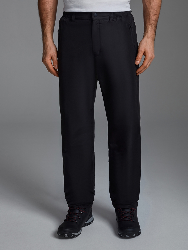 Теплые мужские брюки изготовлены из водоотталкивающей плащевой ткани с мембранным пленочным покрытием. Брюки прямого силуэта утеплены высококачественным полиэфирным материалом. Подкладка - гладкая пол... Показать описаниеиэфирная ткань. Читать далее Карманы брюк прорезные, с молниями. Под левым карманом нашивка с фирменным логотипом. Пояс брюк с внутренней стороны изготовлен из мягкого ворсованного трикотажа, Для регулировки брюк по талии предусмотрена резинка и шлевки для поясного ремня.