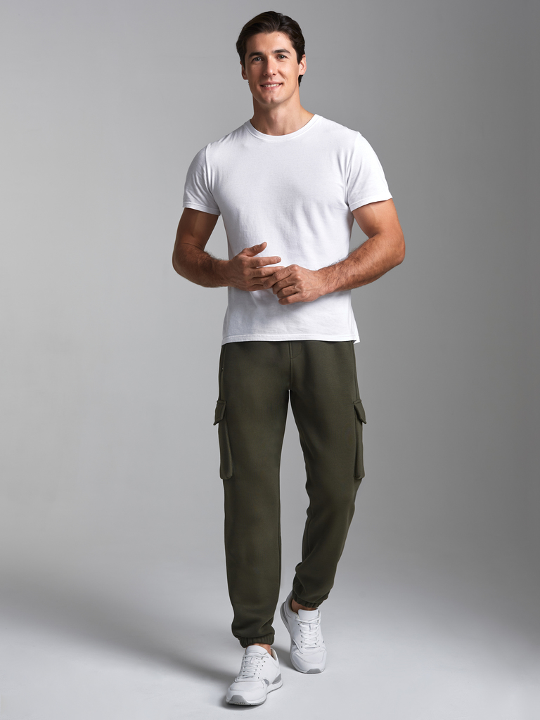 Брюки мужские из плотного и мягкого хлопкового трикотажного полотна с изнаночным начесом. Карманы в рельефах брюк с молниями. Есть еще дополнительные накладные боковые карманы с клапанами. Читать дале... Показать описаниее Низ брюк заужен с манжетой на эластичной резине. Пояс по талии дополнительно регулируется шнурком.