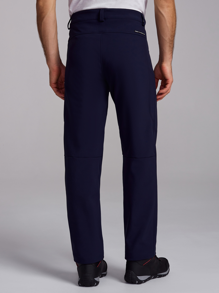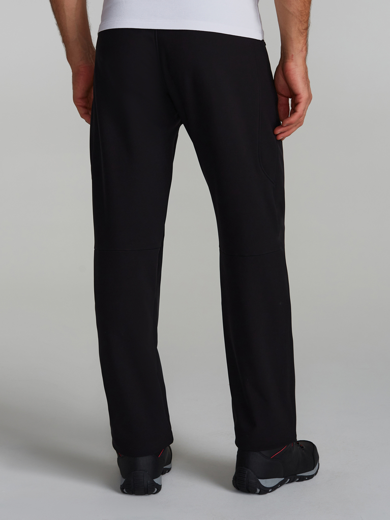 Брюки мужские из плотного и мягкого хлопкового трикотажного полотна с изнаночным начесом. На брюках в области бедер колена и по низу брючин вставки из водоотталкиваюшей плащевой ткани. Карманы "в рамк... Показать описаниеу" с молниями. Читать далее Низ брюк прямой. Пояс по талии дополнительно регулируется шнурком. На левой половине, вдоль бокового шва настрочен шеврон с фирменным логотипом.