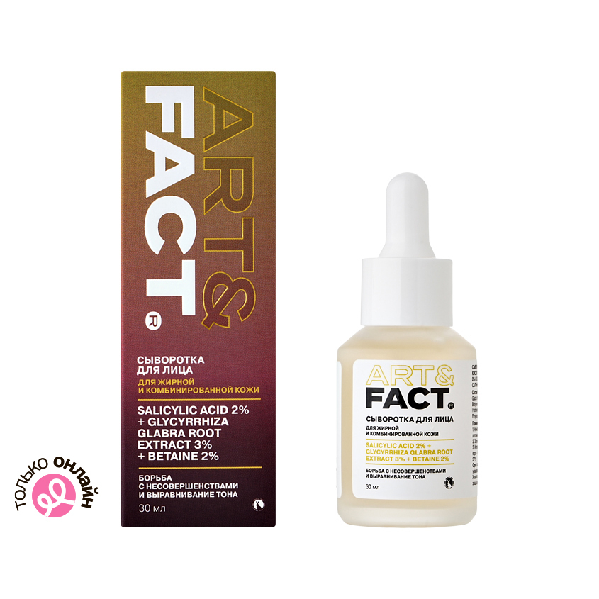 ART&FACT Сыворотка д/лица с салицил.кислотой 2%, экстрактом корня солодки 3% и бетаином 2% 30ml Вопросы по товару