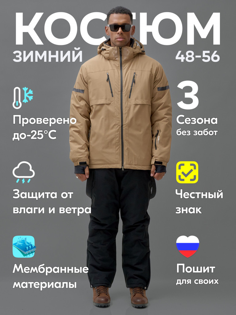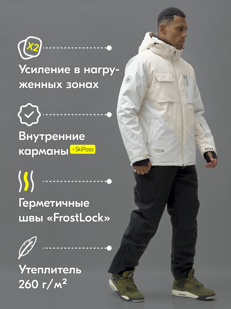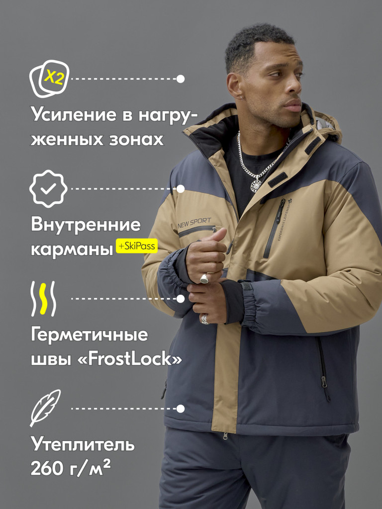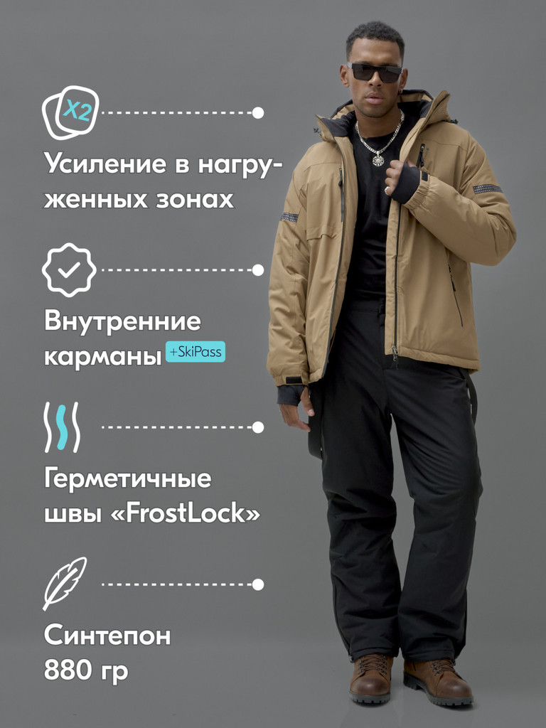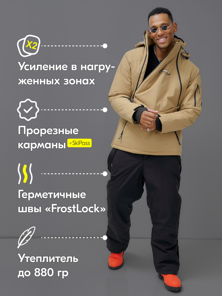 Горнолыжный костюм анорак мужской зимний бежевого цвета 389B Вопросы по товару