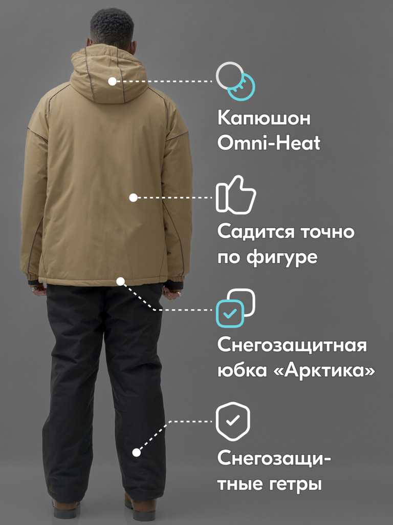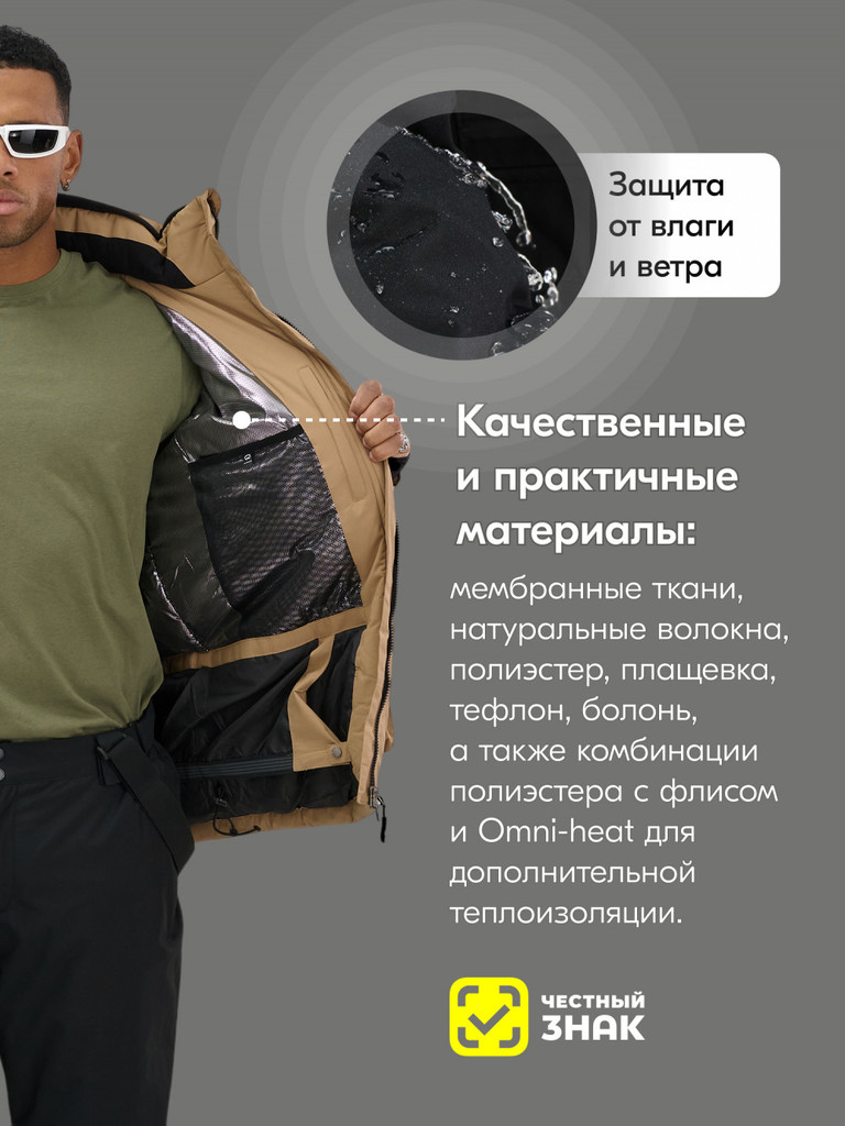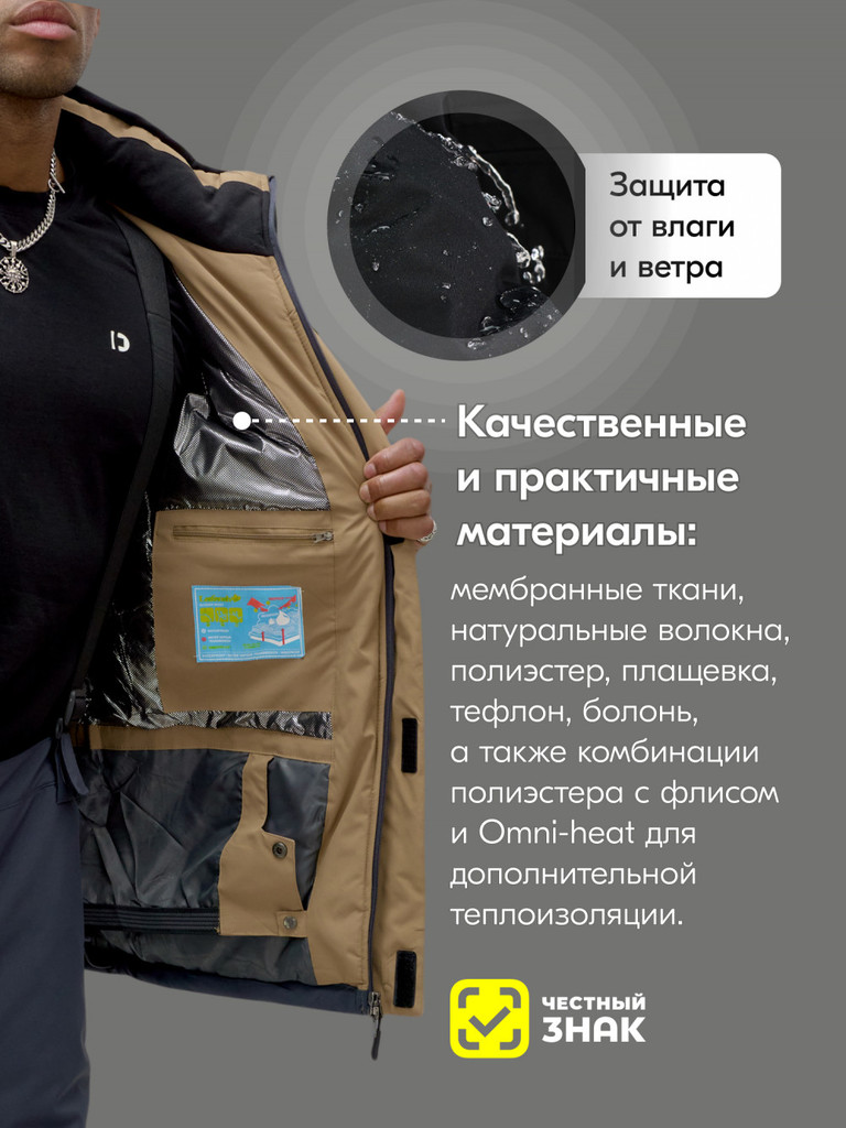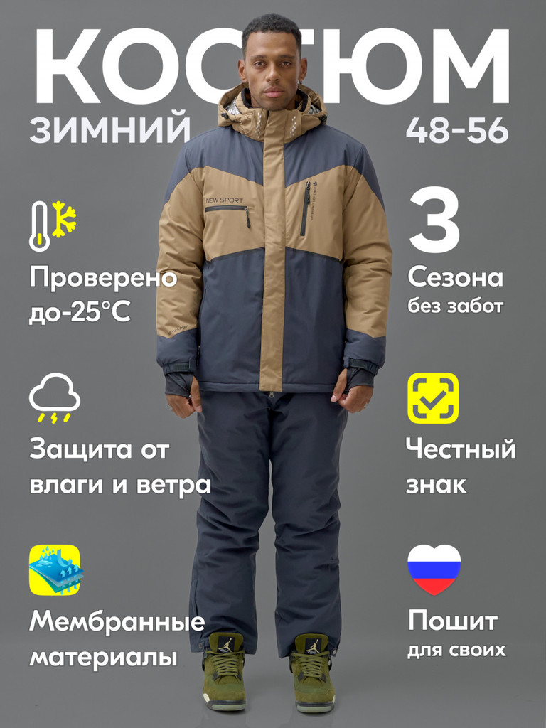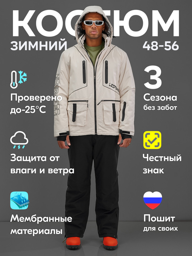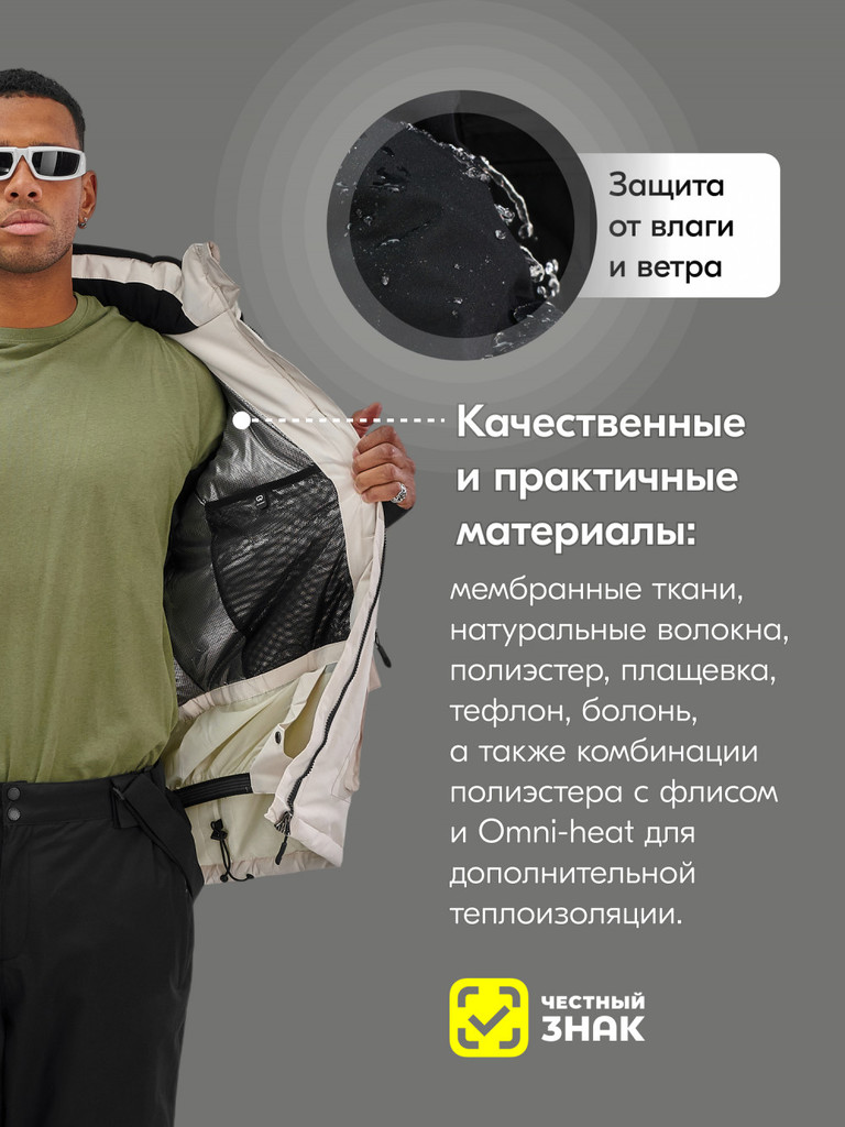 Горнолыжный костюм анорак мужской зимний бежевого цвета 389B Вопросы по товару