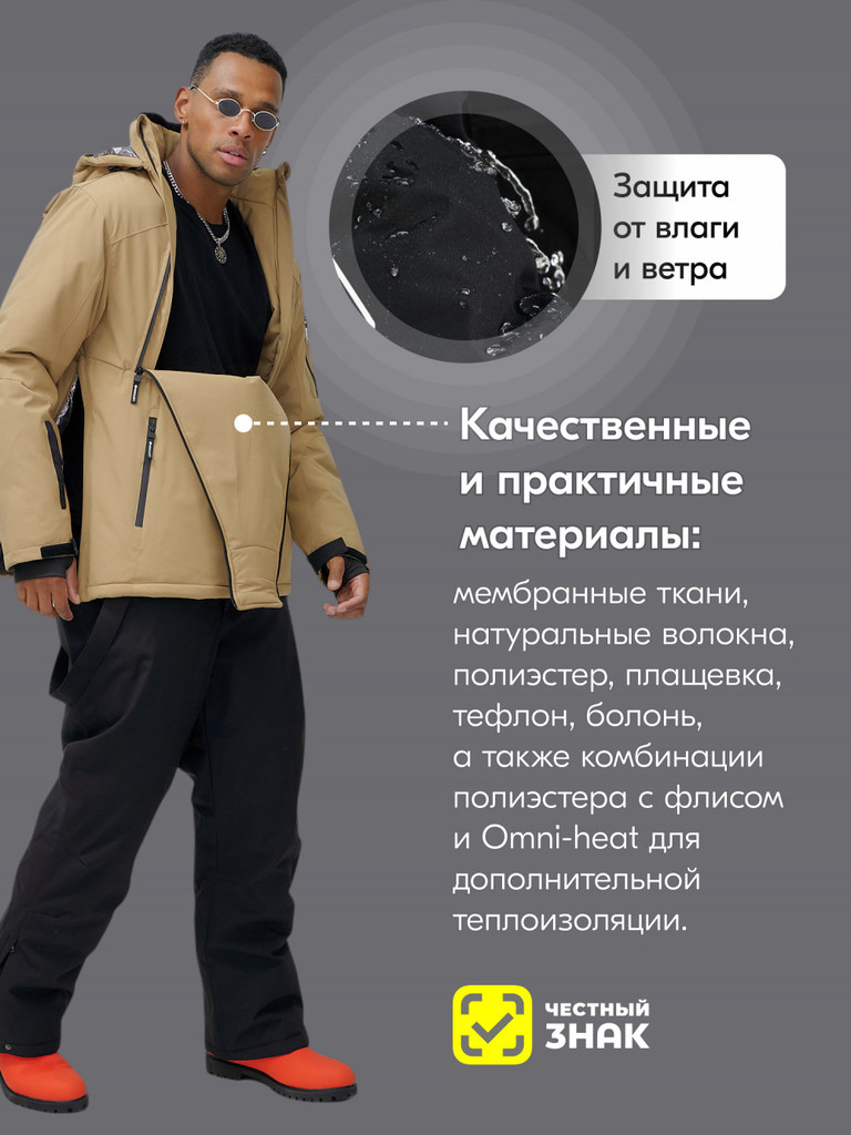 Горнолыжный костюм мужской зимний бежевого цвета 3710B Вопросы по товару