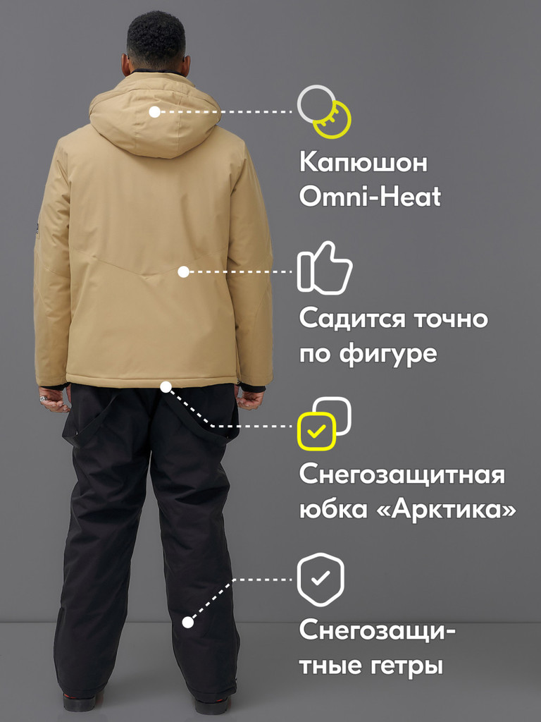Горнолыжный костюм мужской зимний бежевого цвета 372B Вопросы по товару