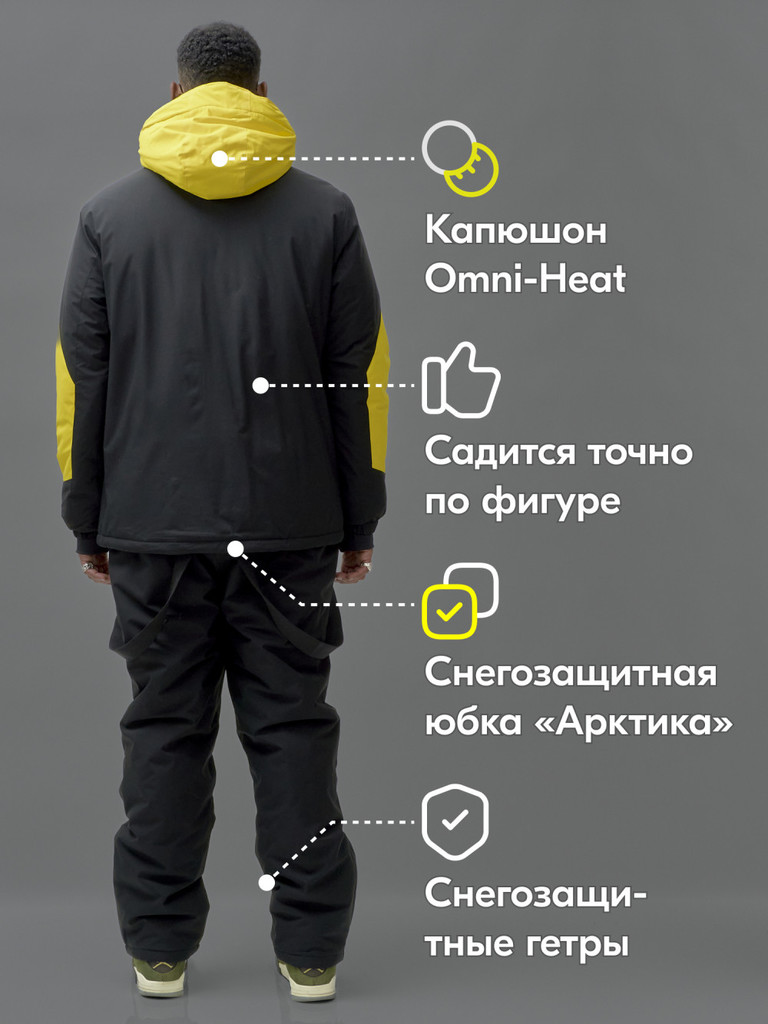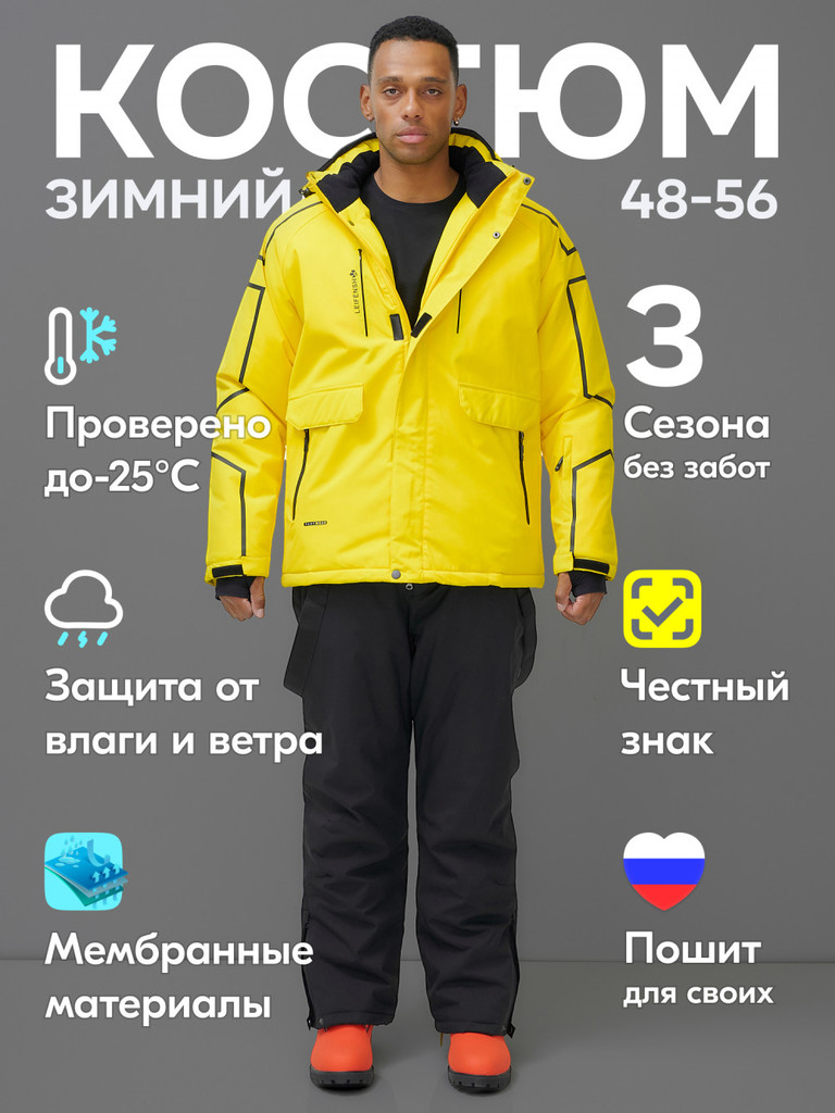 Горнолыжный костюм мужской зимний желтого цвета 02381J Вопросы по товару