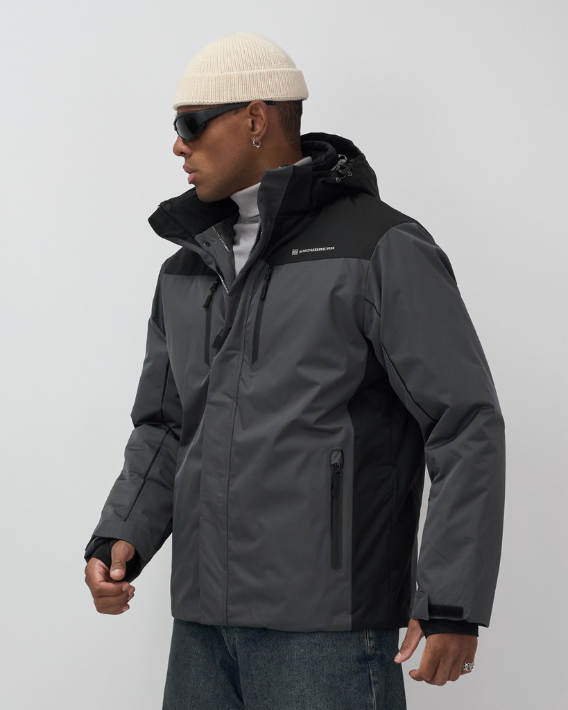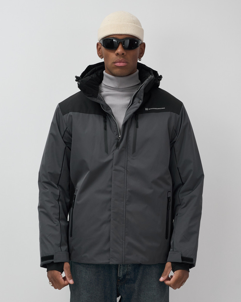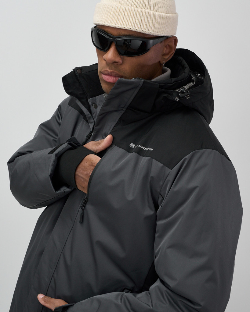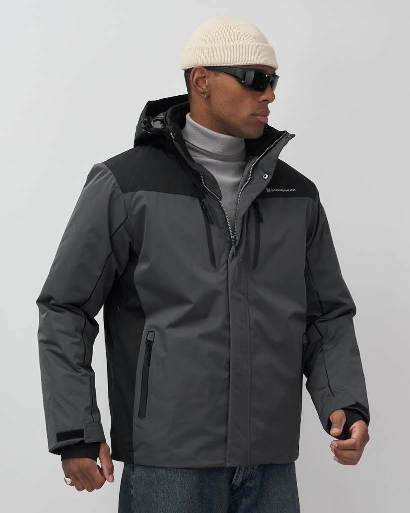 Горнолыжный костюм анорак мужской зимний темно-серого цвета 389TC