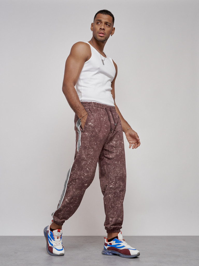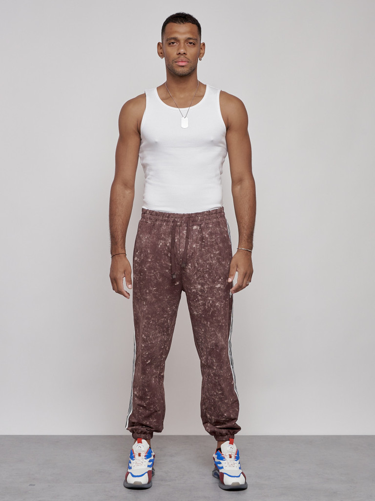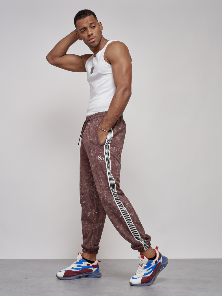 Брюки джоггеры спортивны мужские коричневого цвета 12931K