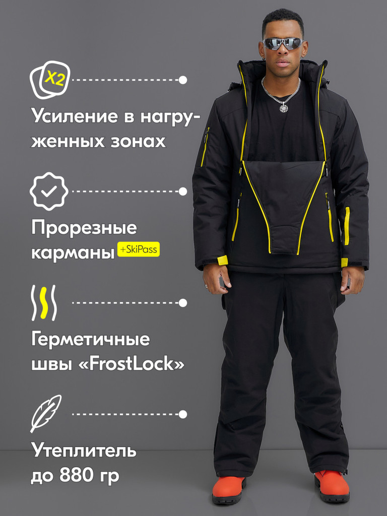 Горнолыжный костюм анорак мужской зимний черного цвета 389Ch Вопросы по товару