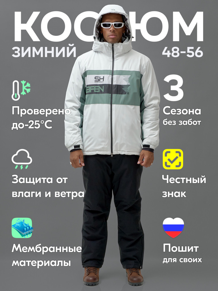 Горнолыжный костюм анорак мужской зимний белого цвета 389Bl бренд Leifensh