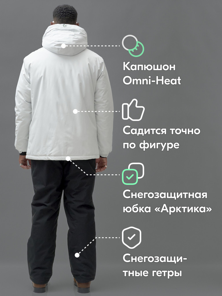 Горнолыжный костюм анорак мужской зимний белого цвета 389Bl Вопросы по товару