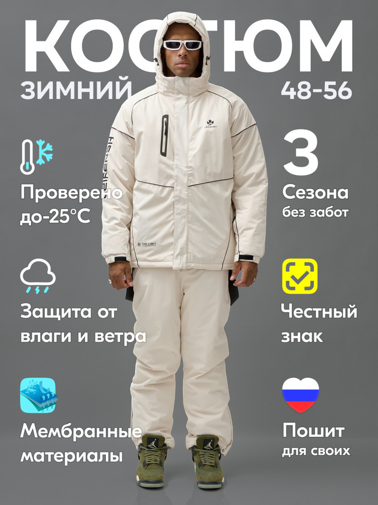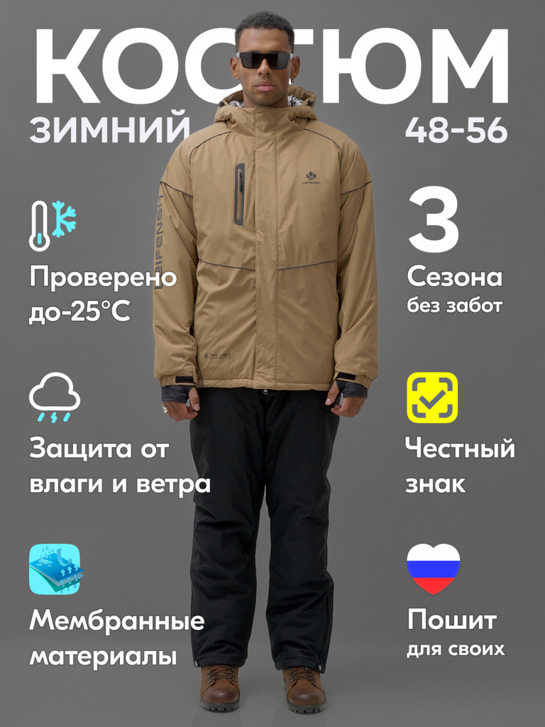 Горнолыжный костюм анорак мужской зимний бежевого цвета 389B бренд Leifensh