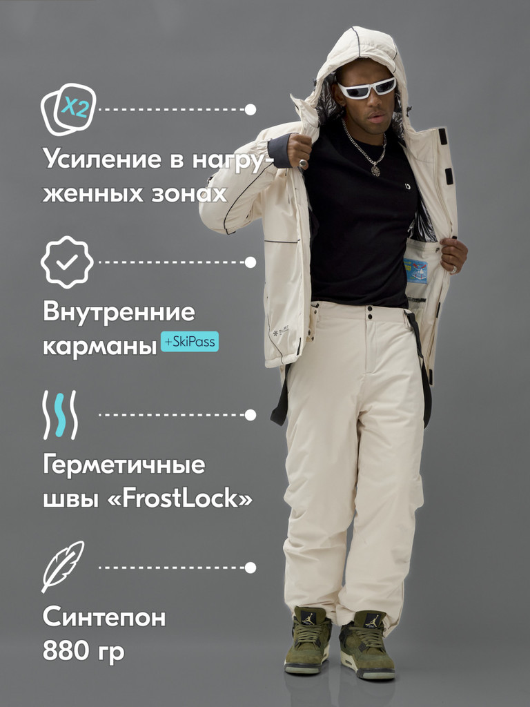 Горнолыжный костюм мужской зимний бежевого цвета 394B Вопросы по товару