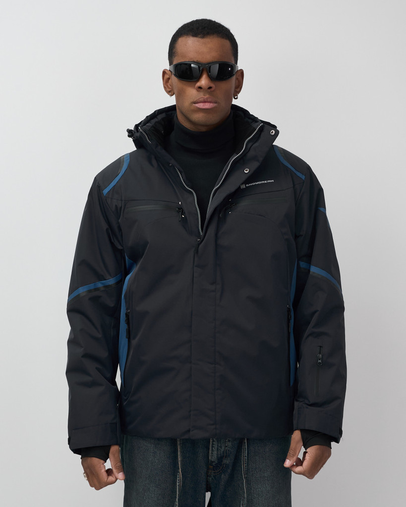 Горнолыжная куртка мужская зимняя черного цвета 7611Ch бренд SNOWDREAM