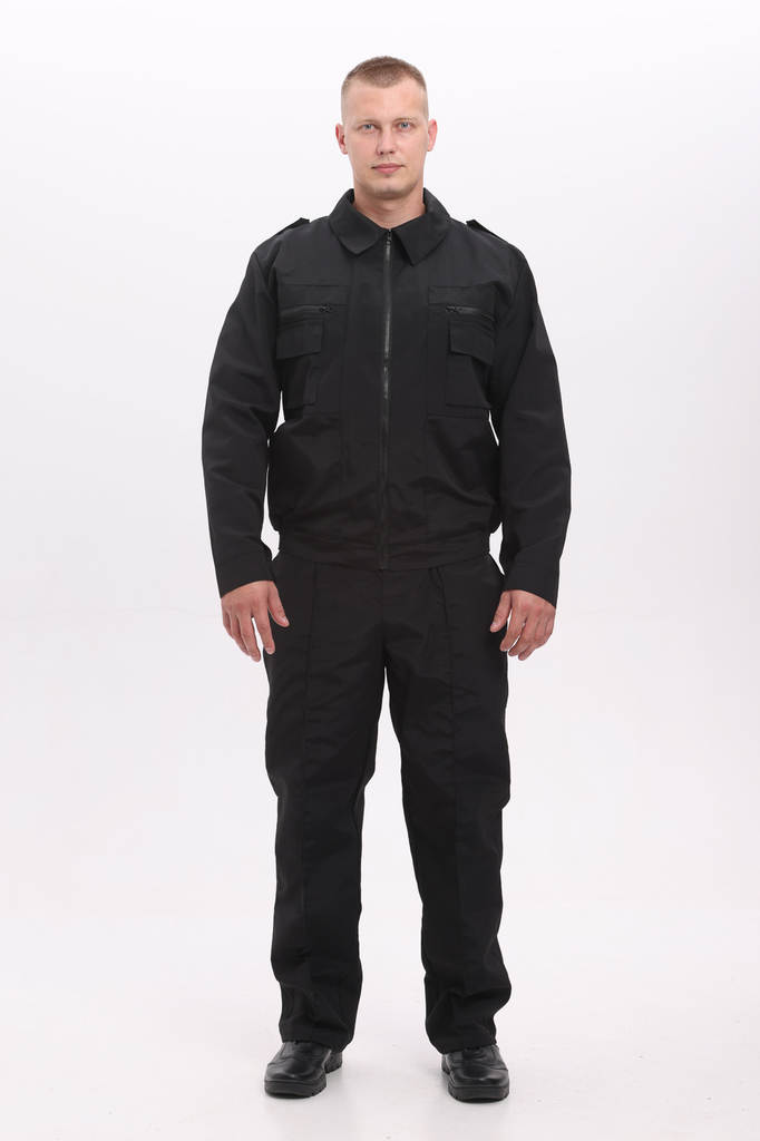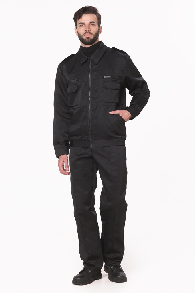 Удобный и практичный костюм "МАСТЕР" ГОСТ 25295-2003 Куртка прямого силуэта с воротником рубашечного типа, с центральной бортовой застёжкой на молнию. Полочки куртки с верхними и нижними накладными ка... Показать описаниерманами.Верхние накладные карманы с молниями, обработанные боковыми и верхними обтачками.На верхних накладных карманах настрочены нагрудные карманы- портфели с клапанами, застёгивающиеся на ленту "контакт". Спинка цельнокроёная. Рукава втачные из двух частей, с отрезными манжетами, застёгивающимися на петли и пуговицы. По плечевым швам в области проймы закреплены погоны пуговицей. Куртка на притачном поясе, на котором в области боковых швов закреплена эластичная тесьма для регулирования ширины куртки по талии. Брюки с гульфом на пуговицах (на молнии) , притачном поясе со шлёвками, собранном на резинку. На передних половинках обработаны два боковых кармана. Плотность ткани смесовая - 200±10 гр / м2