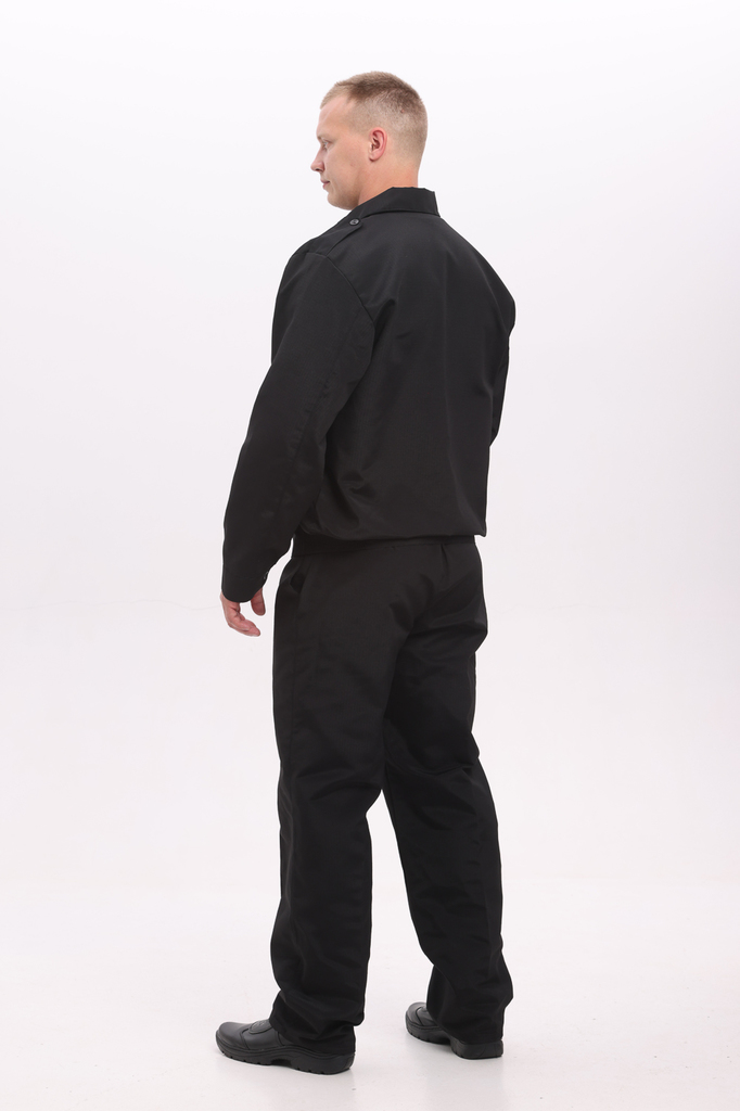 Костюм для представителей рабочих специальностей и охранных структур ГОСТ 25295-2003 Куртка укороченная, с воротником - стойкой, с центральной бортовой застёжкой на молнию (тр. 8/2), с ветрозащитным к... Показать описаниелапаном, застёгивающимся на текстильную тесьму "контакт". Куртка со съёмным меховым воротником, пристёгивающимся на пуговицы, со съёмным капюшоном, по лицевому вырезу стягивающимся шнуром. На полочках обработаны два нижних прорезных кармана с листочкой и два верхних накладных кармана – книжки с клапанами, застёгивающимися на текстильную тесьму "контакт". Спинка цельнокроёная. Рукава втачные из двух частей, с манжетами, притаченными по низу, собранными на эластичную тесьму . Куртка на притачном поясе, собранном на две эластичные ленты. Полукомбинезон с отрезной нагрудной частью, центральной застёжкой на молнию (тр. 5/2). На передних половинках обработаны два объёмных накладных боковых кармана, на нагрудной части накладной карман с клапаном. Задняя часть полукомбинезона в области талии собрана на эластичную тесьму. На задней верхней части полукомбинезона расположены бретели, собранные на эластичную тесьму.