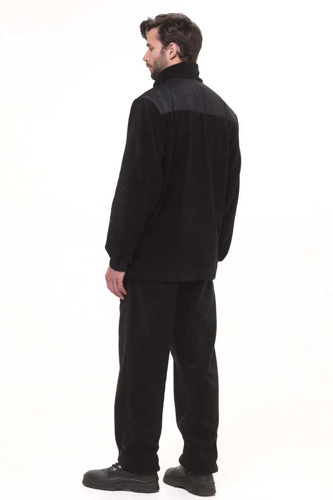 Удобный и комфортный демисезонный костюм ГОСТ 25295-2003 Куртка укороченная, с воротником - стойкой, с центральной бортовой застёжкой на молнию. На полочках обработаны два нижних прорезных кармана с л... Показать описаниеисточкой и два верхних накладных кармана - книжки с клапанами, застёгивающимися на тесьму "контакт". Спинка цельнокроёная. Рукава втачные из двух частей, с манжетами, притаченными по низу, собранные на резинку Куртка на притачном поясе, собранном на эластичную ленту – резинку. Капюшон втачной, состоит из трёх частей, по лицевому вырезу стягивается шнуром. Полукомбинезон мужской с отрезной верхней частью, притачным поясом, боковой застёжкой на пуговицы. На передних половинках обработаны два объёмных накладных кармана. На нагрудной части обработаны накладной карман с клапаном, застёгивающийся на текстильную застёжку "контакт" и карман в рамку с молнией. Задняя часть полукомбинезон в области талии собрана на эластичную тесьму. В верхней части полукомбинезона расположены бретели, собраны на эластичную тесьму. Плотность ткани полофлис 245гр/кв.м.