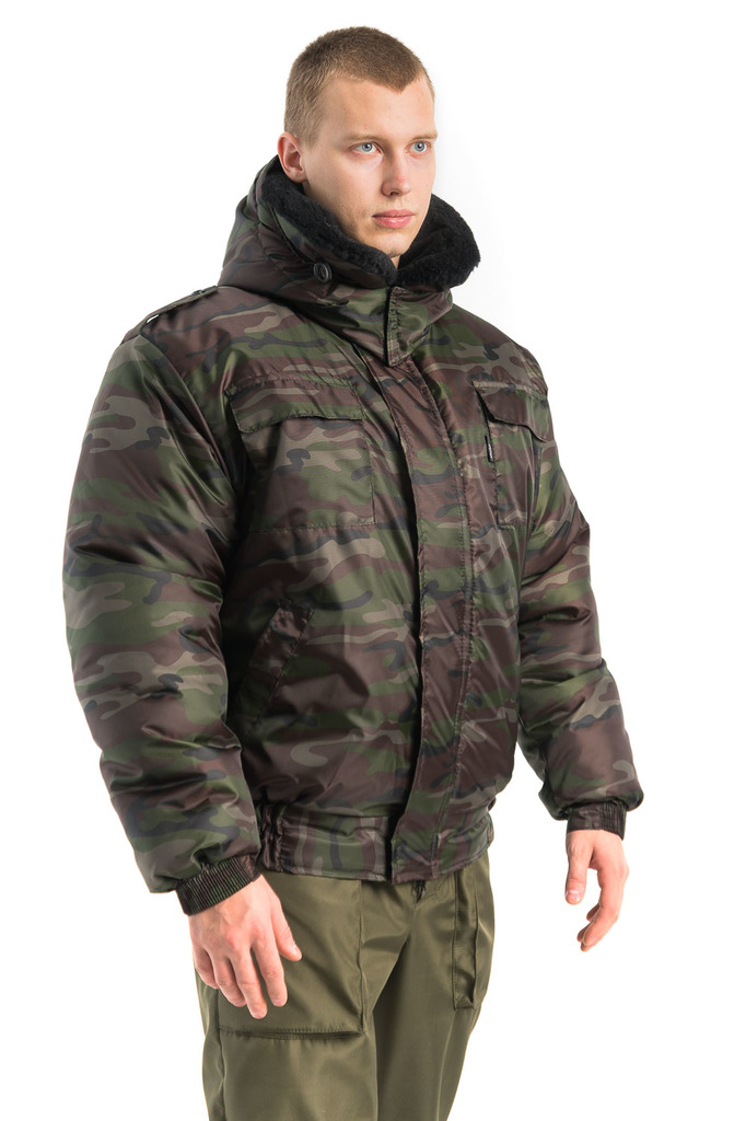 Ветро-влагозащитная куртка подходит для охранных структур ГОСТ 25295-2003 Куртка укороченная, с воротником - стойкой, с центральной бортовой застёжкой на молнию (тр. 8/2), с ветрозащитным клапаном, за... Показать описаниестёгивающимся на тесьму "контакт". Куртка со съёмным меховым воротником, пристёгивающимся на пуговицы , со съёмным капюшоном, по лицевому вырезу стягивающимся шнуром. На полочках обработаны два нижних прорезных кармана с листочкой и два верхних накладных кармана - книжками с клапанами, застёгивающимися на тесьму "контакт". Спинка цельнокроёная. Рукава втачные из двух частей, с манжетами, притаченными по низу, собранными на эластичную тесьму. В области плечевых швов расположены погоны – хлястики, прикрепленные на пуговицы. Куртка на притачном поясе, собранном на две эластичные ленты.