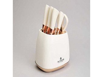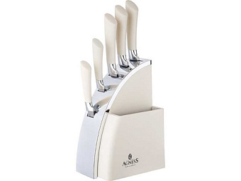 911-785 НАБОР НОЖЕЙ AGNESS  НА ПЛАСТИКОВОЙ ПОДСТАВКЕ, 7 ПРЕДМЕТОВ