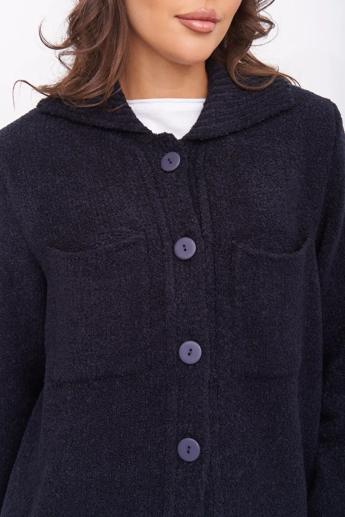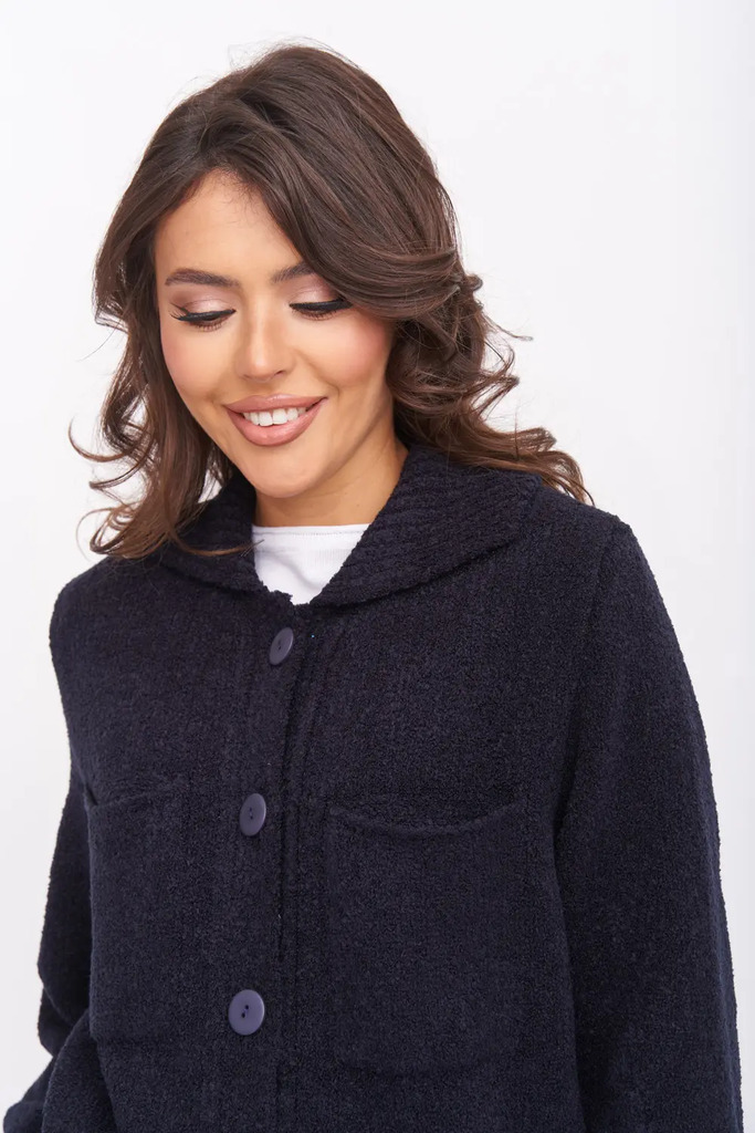 Женский вязаный жакет прямого силуэта с воротничком, на пуговицах. На груди два накладных кармана. Рукава втачные длинные с эластичными манжетами. Жакет выполнен из качественной буклированной пряжи с ... Показать описаниесоставом 30% хлопок/70% ПАН, очень мягкой, нежной и приятной к телу. Данный жакет позволяет создать свой стиль на любой вкус и настроение: женственный – с платьем, юбкой, балетками или сапогами. Спортивно-повседневный – с джинсами, брюками и кроссовками. Можно взять на размер больше и создать современный oversize-стиль. Жакет обеспечивает комфорт и стиль одновременно. Внимание! Пояс в комплект не входит.
