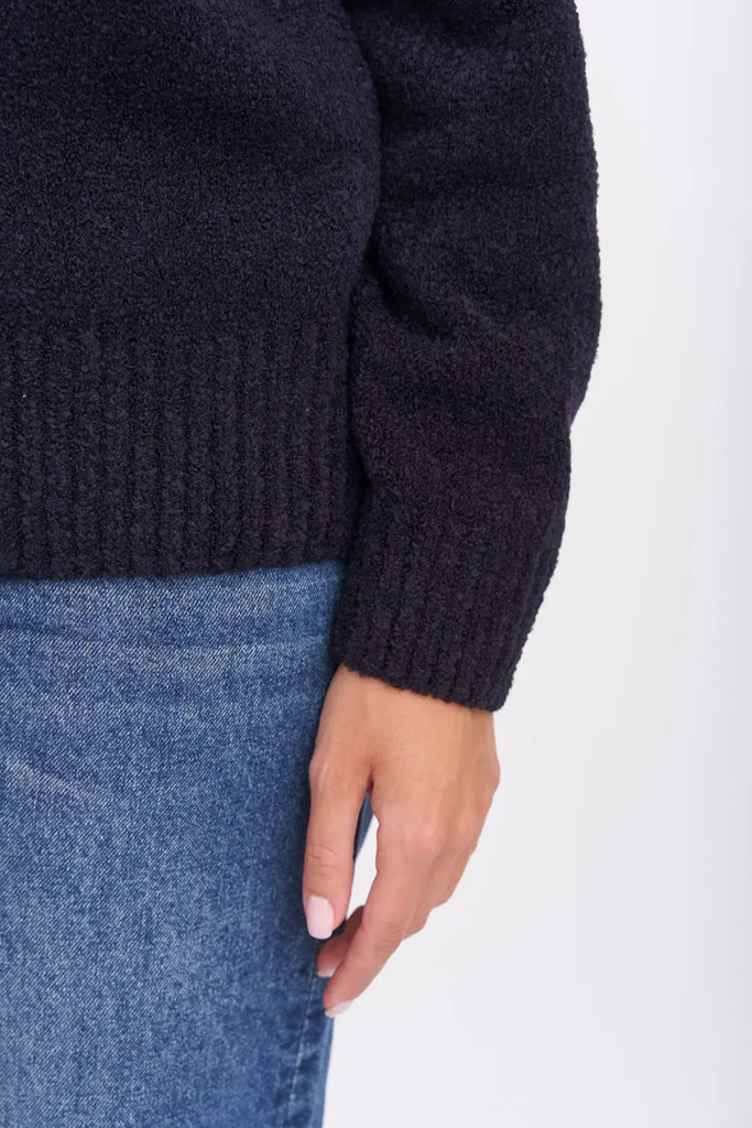 Джемпер с цельновывязанным рукавом "летучая мышь"длиной до локтевого сгиба. Горловина круглая лодочка. Джемпер выполнен структурным кулирным переплетением. По линии выше груди проходит ажур.
