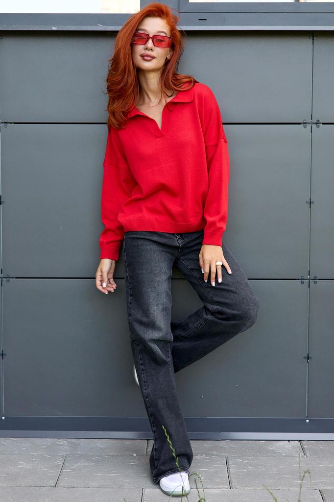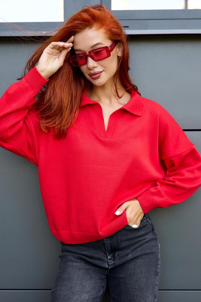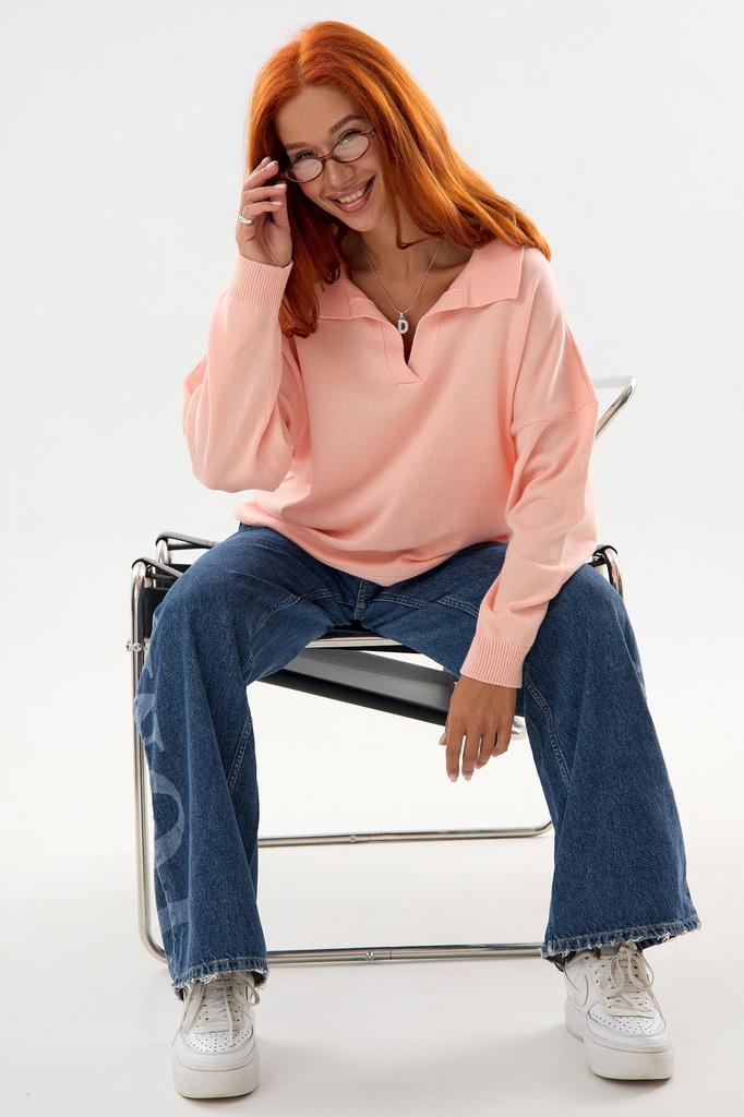 Классический, строгий женский джемпер Феникс. Универсальная модель с отложным воротничком, длинными рукавами с манжетами. Удобный и практичный джемпер на каждый день в холодное время года.