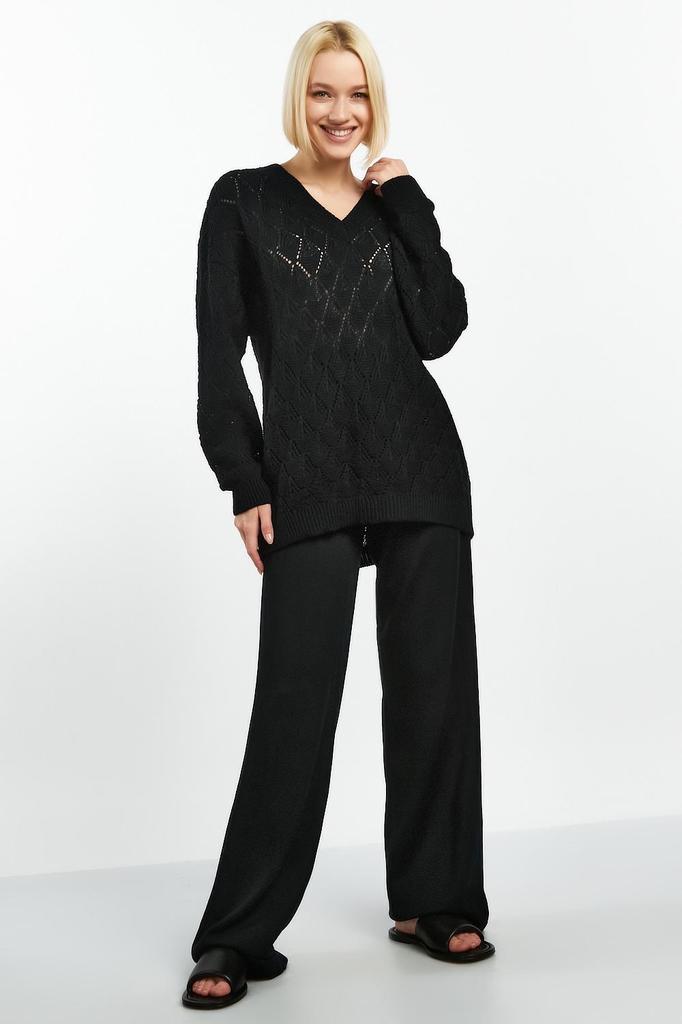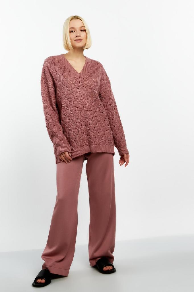 Пуловер женский оверсайз с геометрическим рисунком. Стильный вариант для создания ежедневных образов. Пуловер можно сочетать с брюками, джинсами и юбками. Вязаный удлиненный пуловер с горловиной мысик... Показать описаниеом подходит для любой погоды. Одежда как для дома, так и для активного отдыха, прогулок.