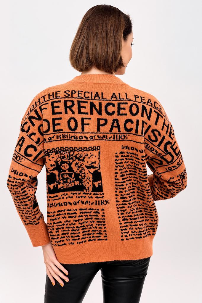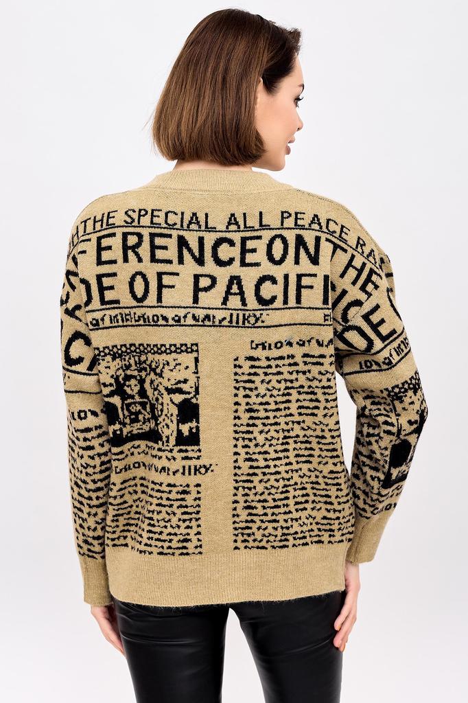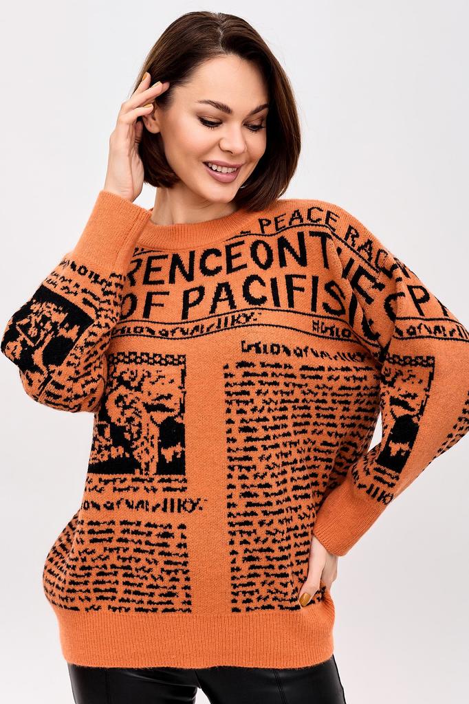 Уникальный, яркий джемпер выделит Вас среди других. Яркий и оригинальный принт в стиле газетных колонок и шрифт делает модель джемпера необычной и привлекательной. Теплый и в тоже время дышащий матери... Показать описаниеал позволит чувствовать себя комфортно как на улице, так и в помещении. Красиво джемпер можно сочетать как с брюками, так и с юбками.