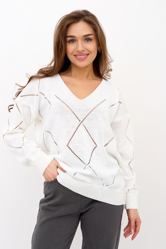 Невероятно мягкий и легкий джемпер ажурной вязки создаст стильный образ и станет неотъемлемой частью Вашего гардероба. Материал джемпера приятен к телу, Благодаря свободному крою джемпер скроет лишнее... Показать описание и придаст силуэту женственность. Отлично подойдет девушкам и женщинам с любым типом фигуры. Сочетать можно с брюками, джинсами, юбками создавая свои неповторимые и яркие образы как в классическом так и повседневном, спортивном стиле.
