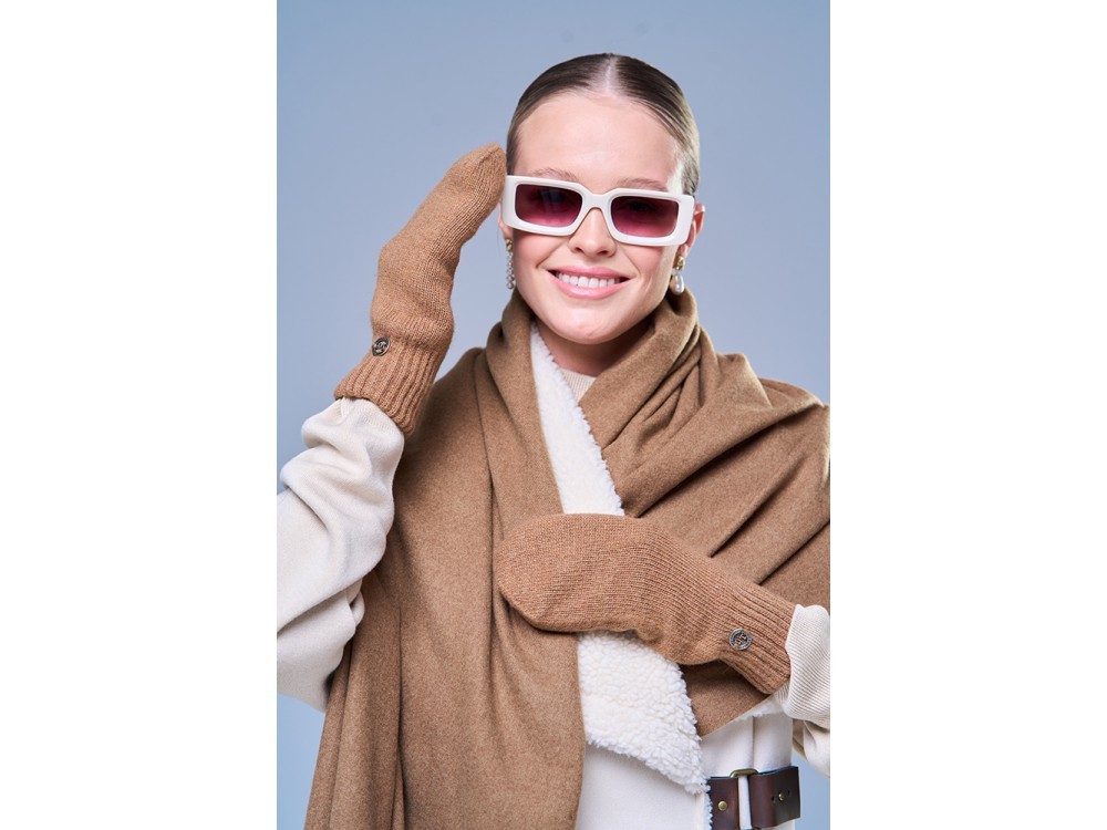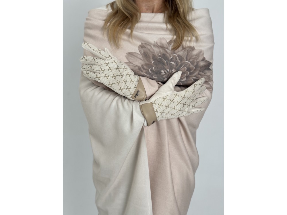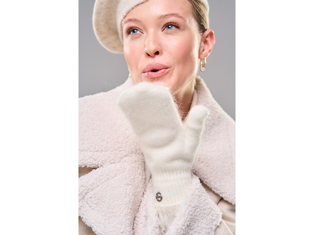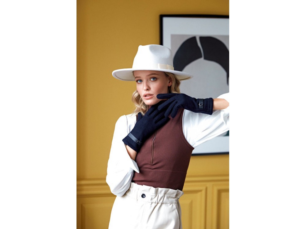 Размер: единый Состав: 80% шерсть Описание: благодаря наличию на пальцах особой нити в виде цветка любыми современными устройствами можно пользоваться, не снимая перчаток - система TOUCH SCREEN