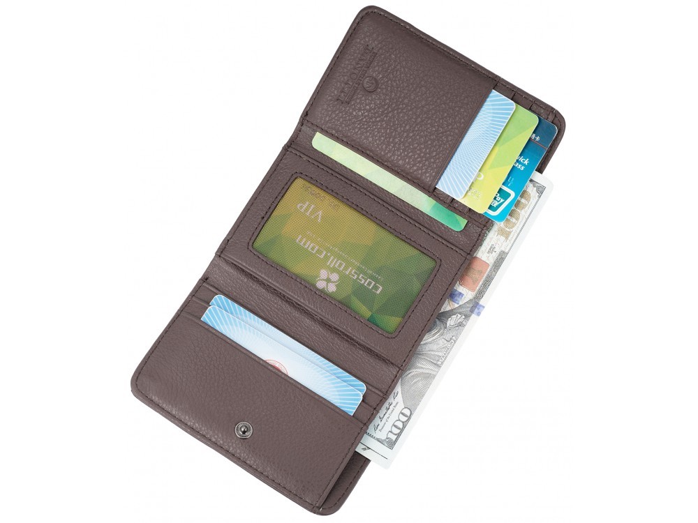 Размер: 11,5*9 Вес товара без упаковки 0,3 Состав натуральная кожа Вид застежки: магнит + молния Описание Большое количество отделений, поможет держать все содержимое в порядке: купюры, банковские, ди... Показать описаниесконтные карты, монеты.