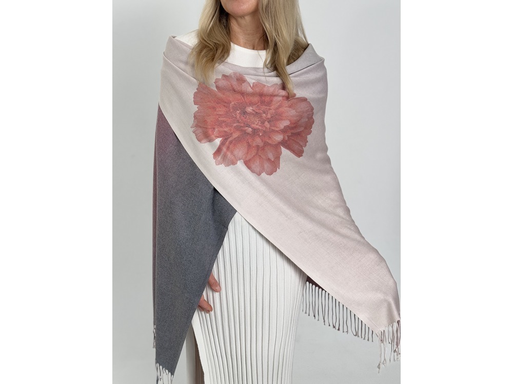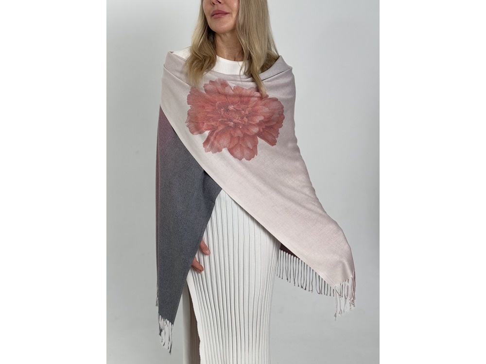 Палантин пион: первая сторона рисунок, вторая сторона деграде. Размер:180*70 см Состав: 70%хлопок, 30%бамбук .