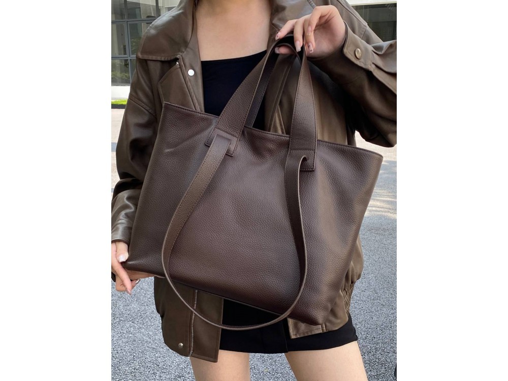 РАСПРОДАЖА! Размер 33/10/27 Вес товара без упаковки: 0,7 Состав: натуральная кожа Вид застежки: молния Описание: две короткие ручки и длинный ремень с возможностью регулировки. Стильная сумка-шоппер, ... Показать описаниес одним большим отделением для покупок, универсальна для любого типа женщин. Необработанный край на сумке, демонстрирует качество натуральной кожи, и это делает видимым для всех окружающих. Фирменный вышитый подклад COTTON 600 DEN. Позволяет вмещать свободно формат А4. Маленький хлястик, является дополнительным украшением. Металлические ножки на дне сумки позволяют продлить срок службы изделию.