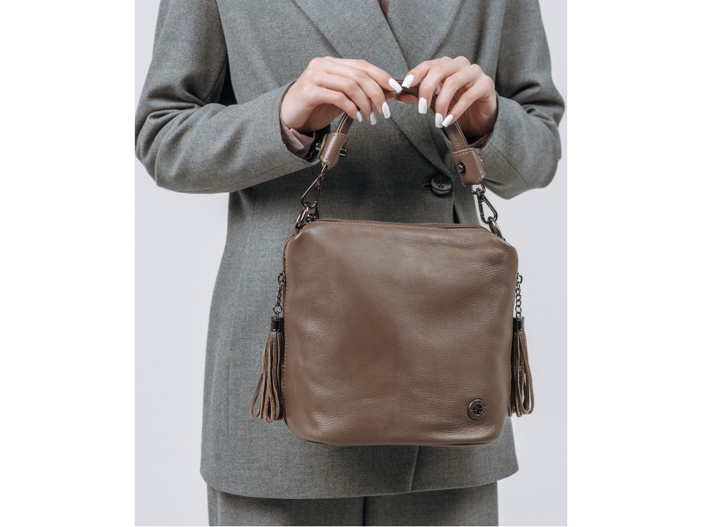 Размер: 36/11,5/15 Вес товара без упаковки Состав: Натуральная кожа Вид застежки: молния Описание: Сумка женская из натуральной кожи с регулиремой ручкой, с помощью которой можно носить сумку как... Показать описание на плече, так и в руках. Внури сумки одно основное отделение с дополнительными карманами для мелочей.
